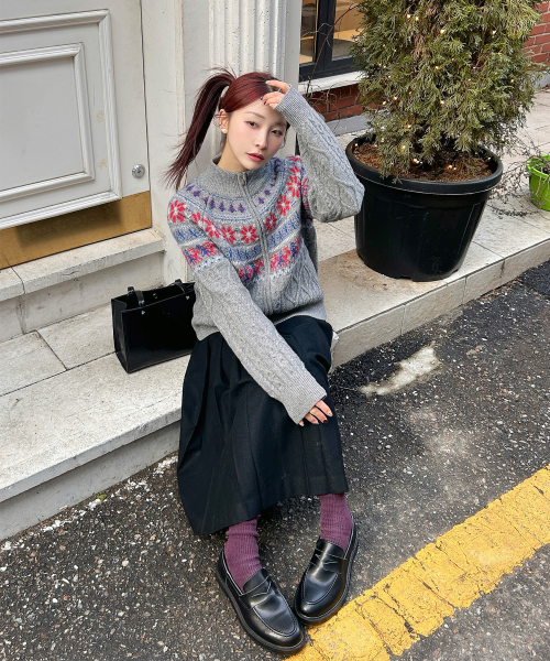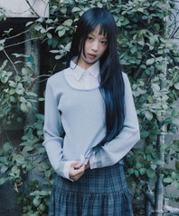 [서지수PICK] 슬림핏 셔츠 카라 라운드넥 풀오버_MIWKAG336T