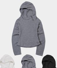 [트렌디에비뉴 PICK] 자수 골지 세미크롭 사이드 버튼 후드 롱 슬림 긴팔 티셔츠 _ 3COLOR