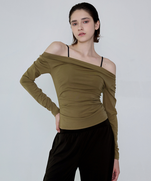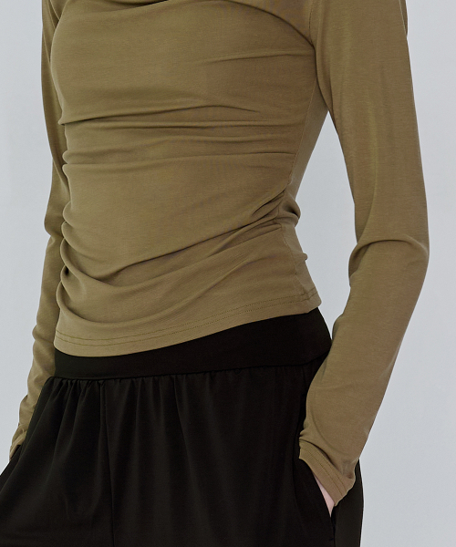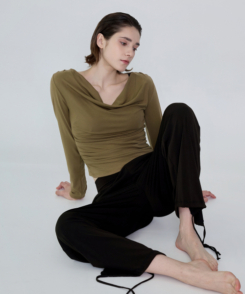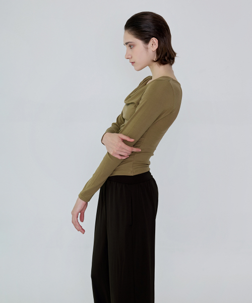 여성요가복 DEVI-T0143-올리브카키 필라테스 드레이프 투웨이 롱슬리브