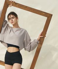 여성 요가복 DEVI-T0049-샌드 필라테스 오버크롭티 긴팔티 맨투맨