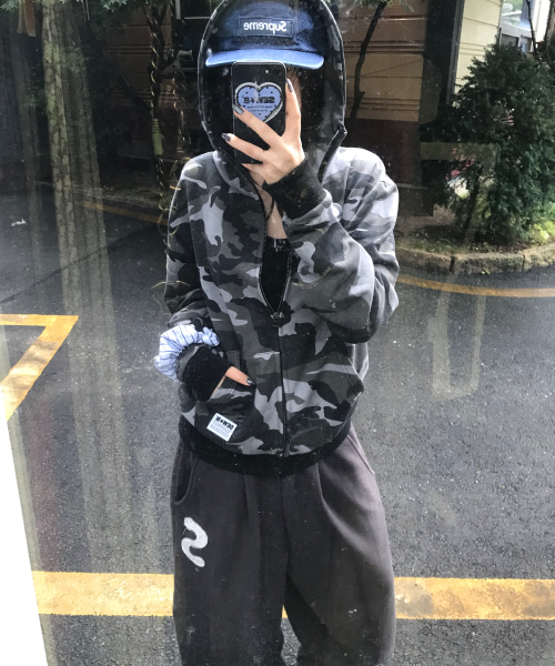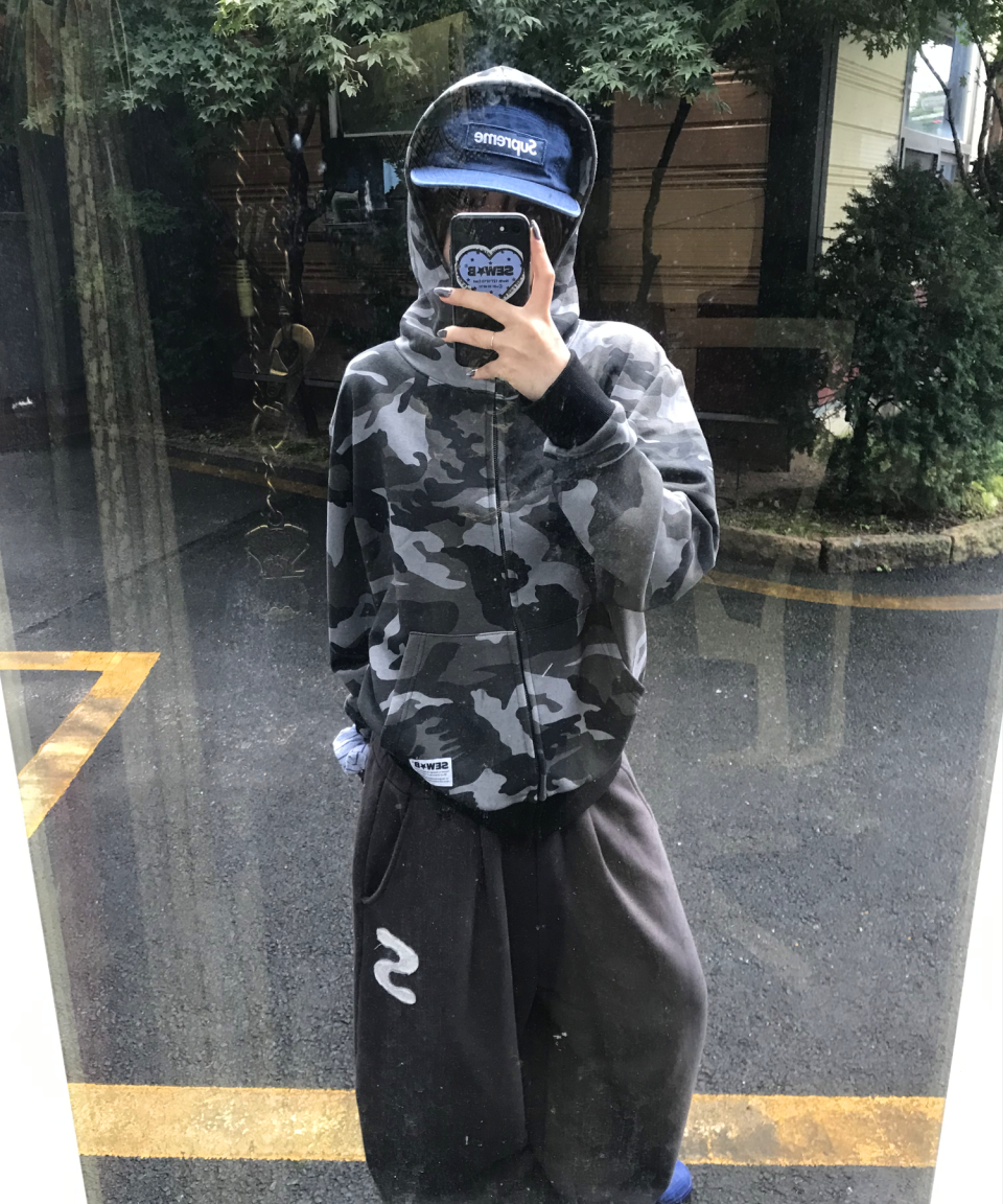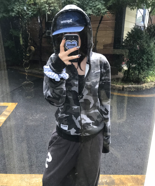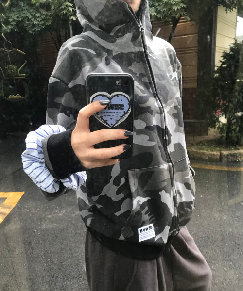 하이넥 black camo (세미오버) 후드집업