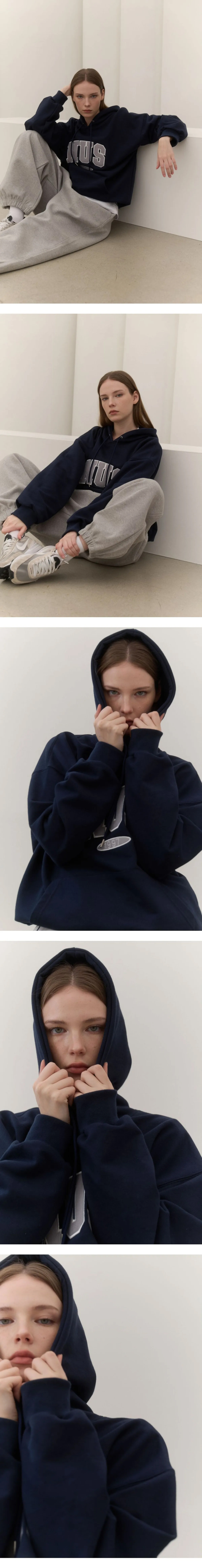 로고 네이비 후드티