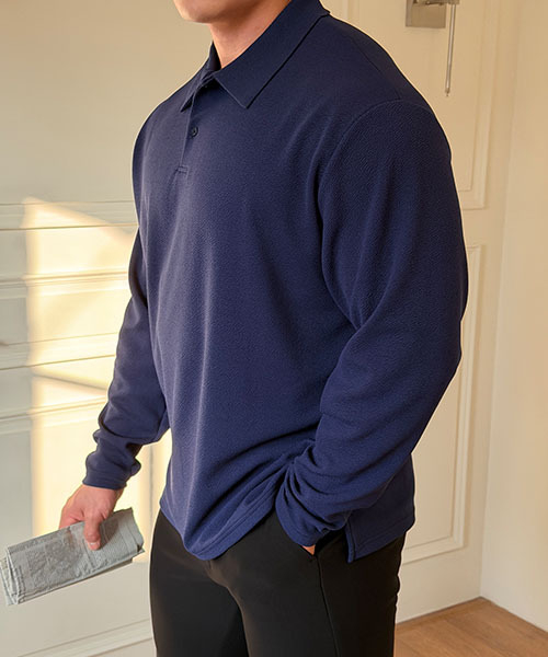 모노 스트라이프 럭비 카라 긴팔티 [XL-8XL]
