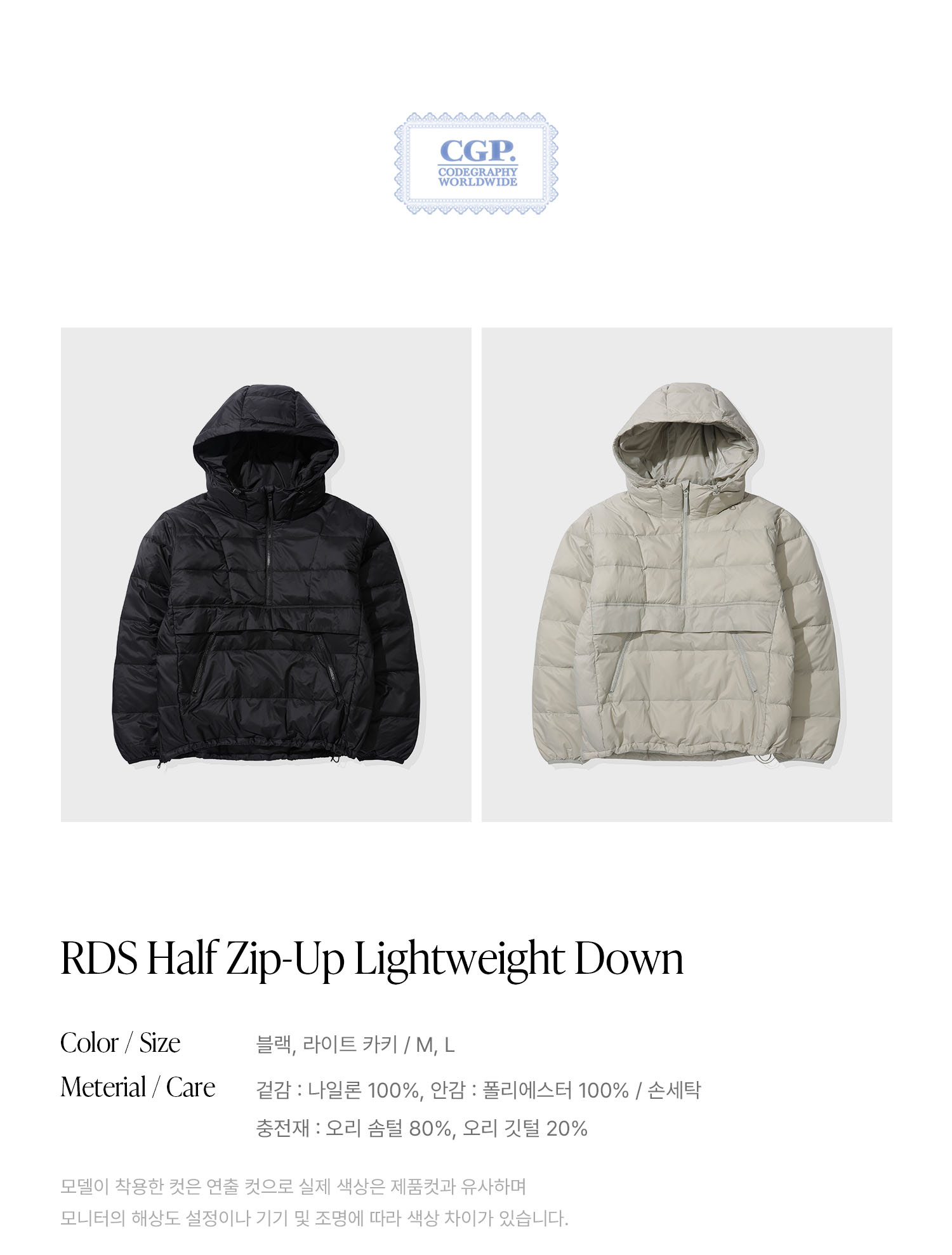 RDS 하프집업 경량다운-블랙