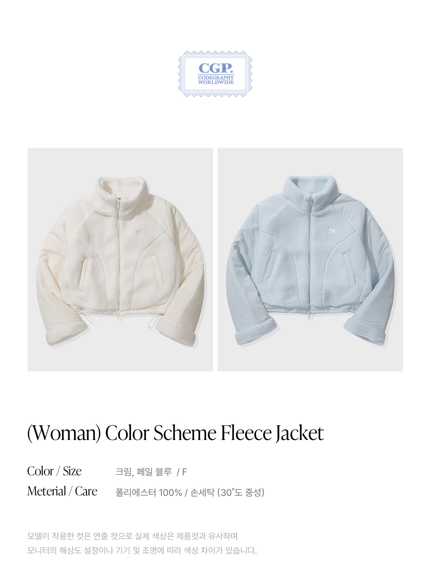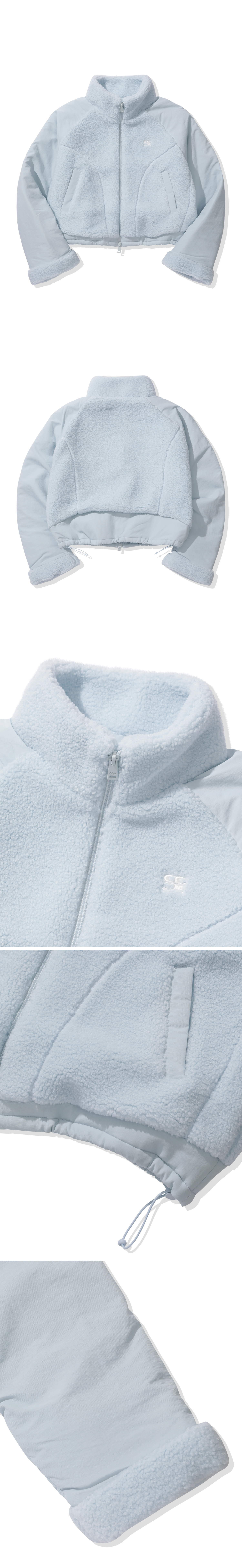 (우먼) 배색 플리스 자켓-페일 블루