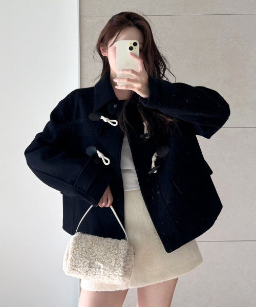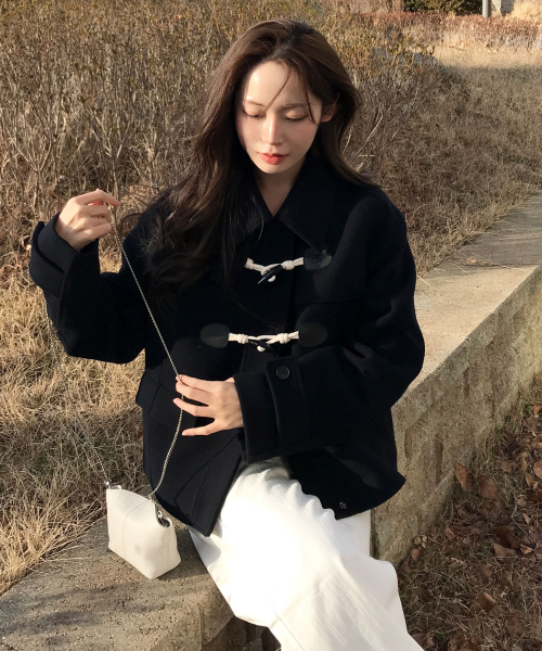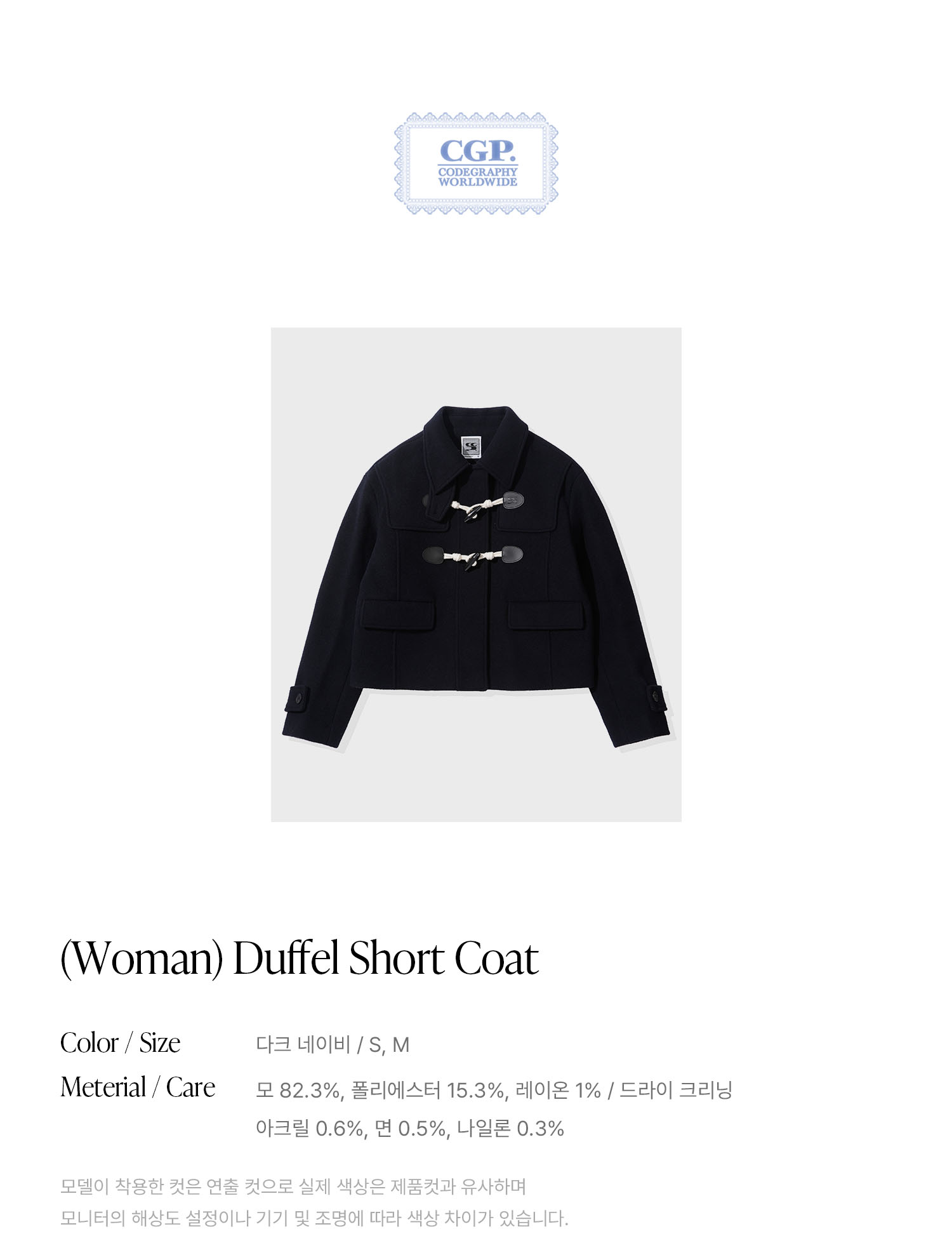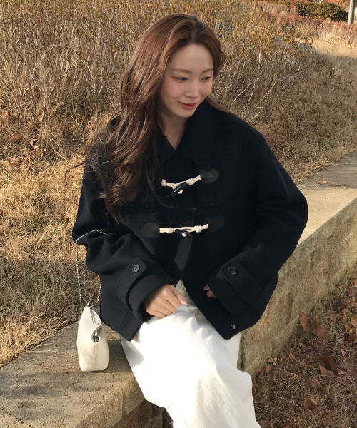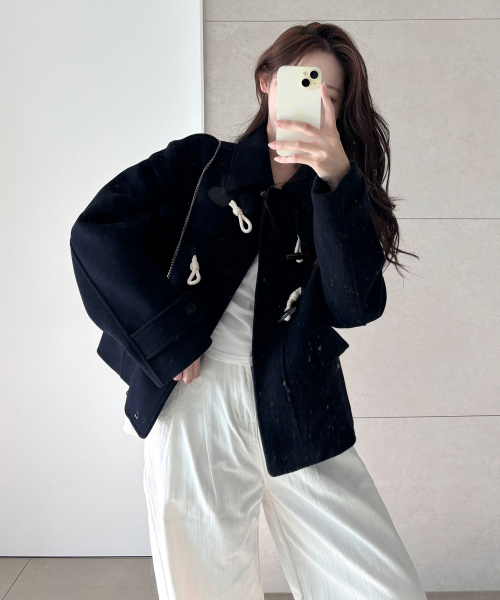 (우먼) 더플 숏 코트-다크 네이비