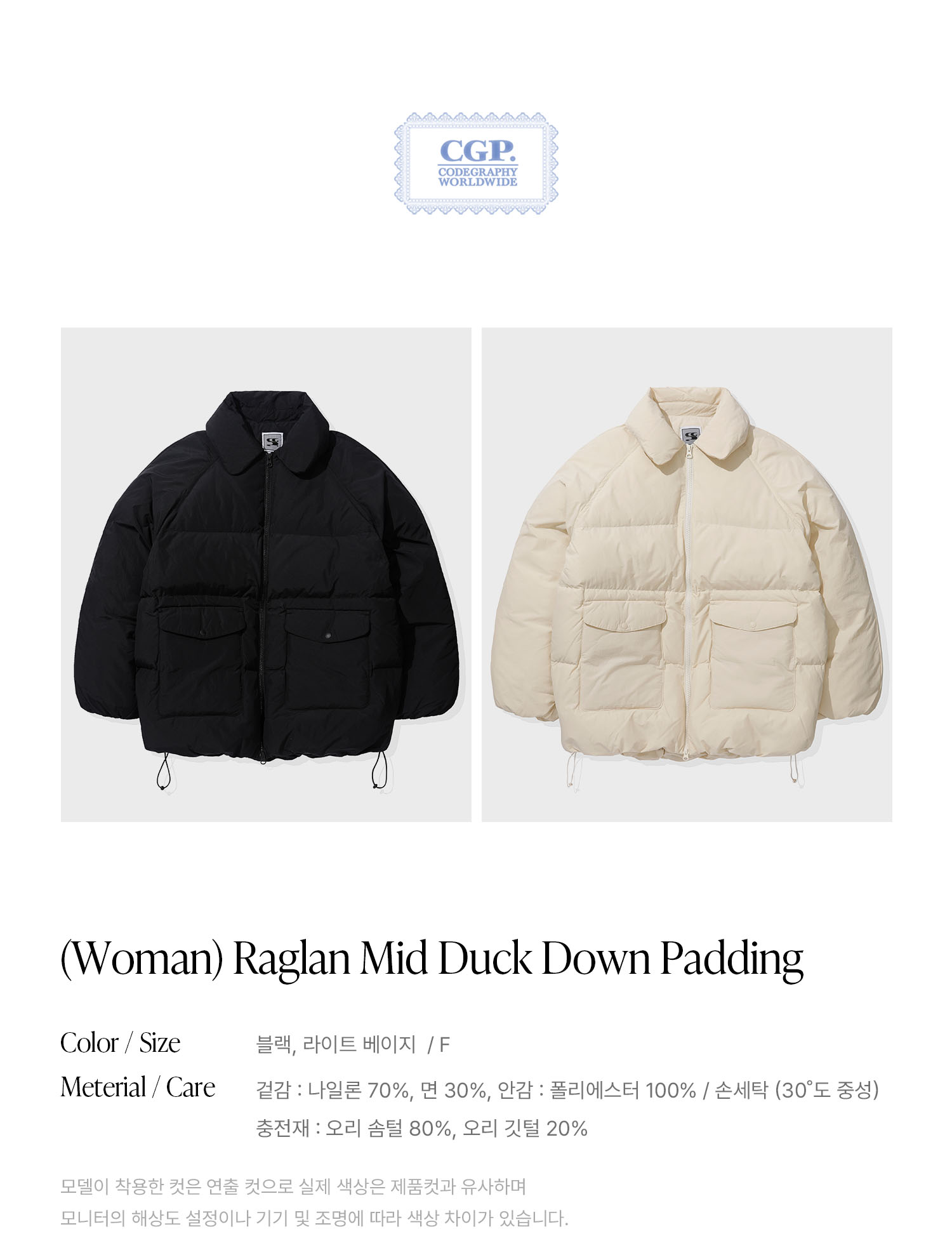 (우먼) 레글런 미드 덕다운 패딩-블랙