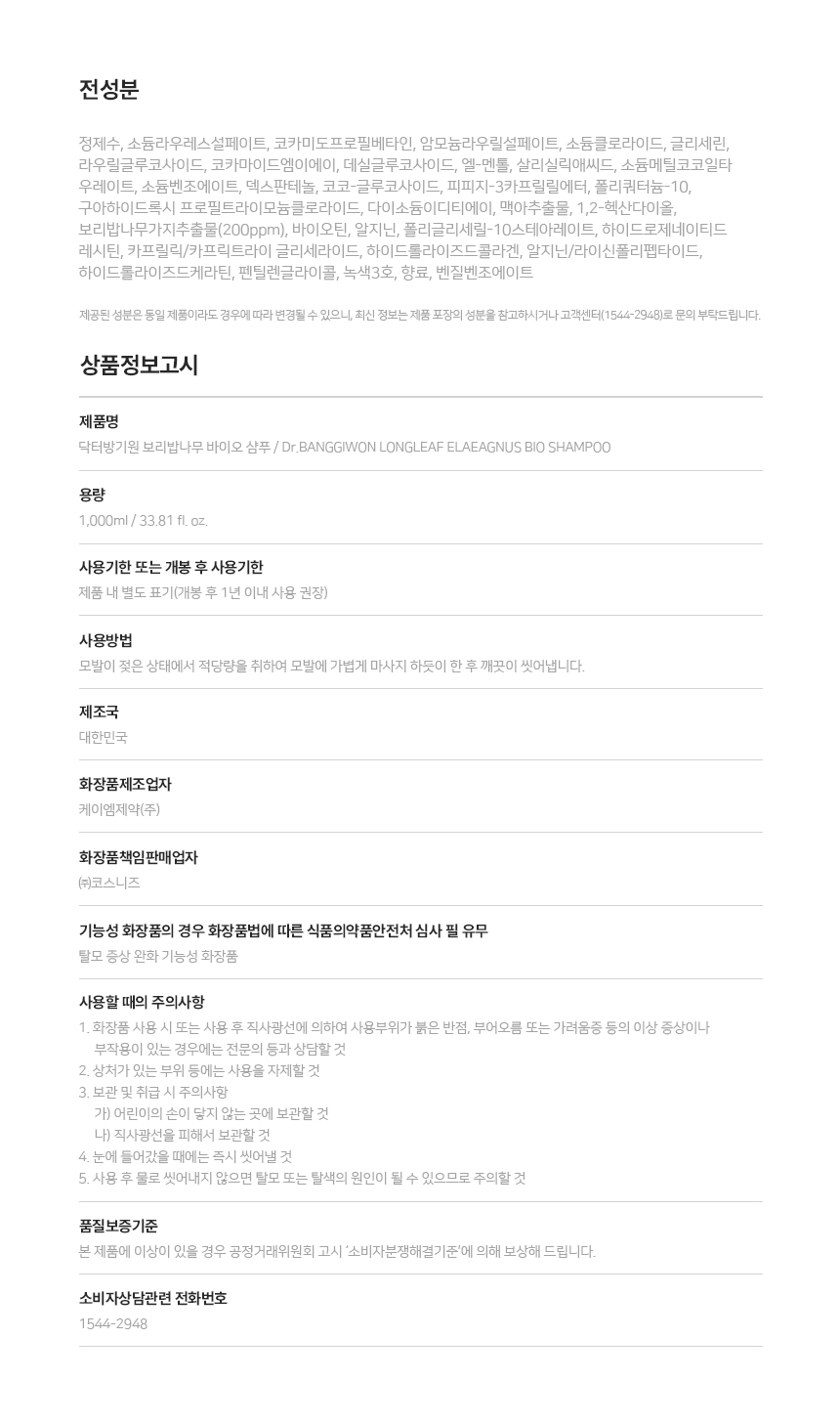보리밥나무 탈모 샴푸 1L / 탈모완화기능성