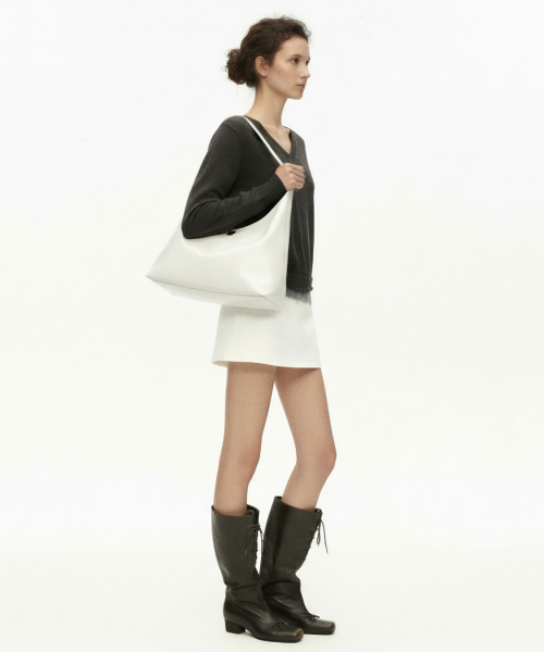Large Wax Leather Shoulder Bag - WHITE