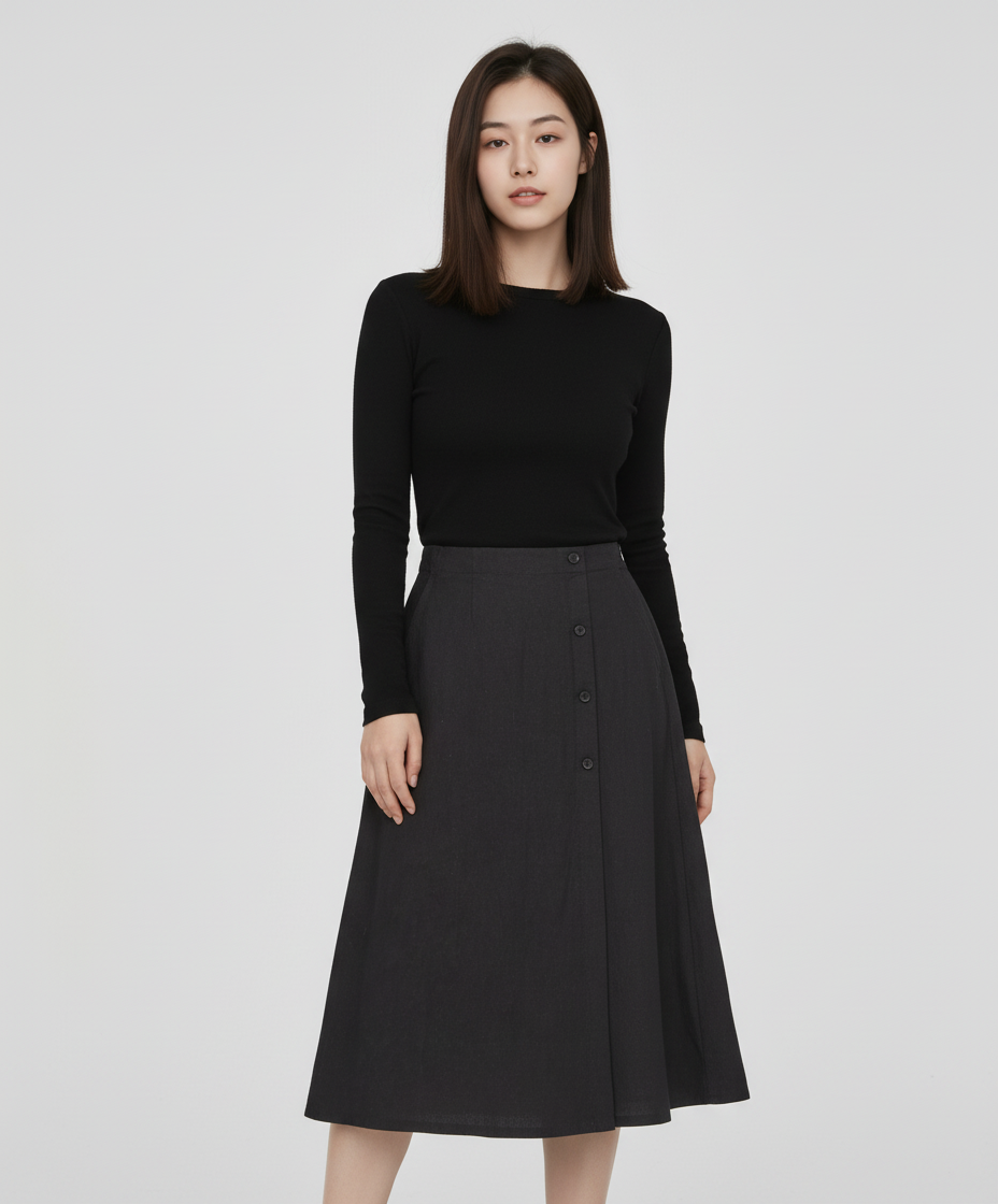 여성) 리넨 레이온 버튼 스커트_MSC2RS2203 M