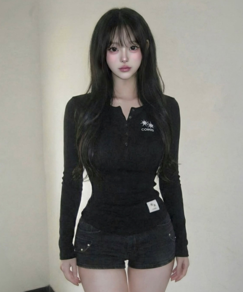 솔루나 원 숄더 배색 긴팔 티 (2컬러)