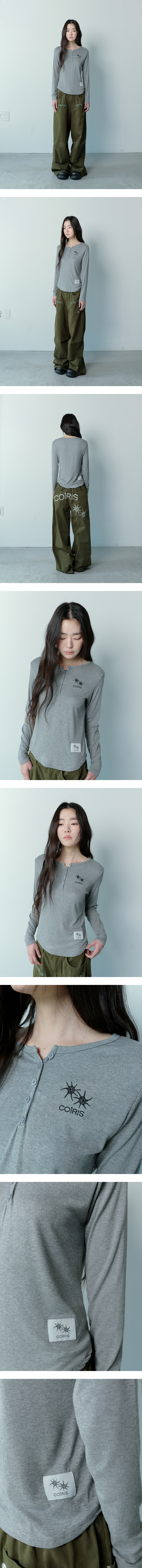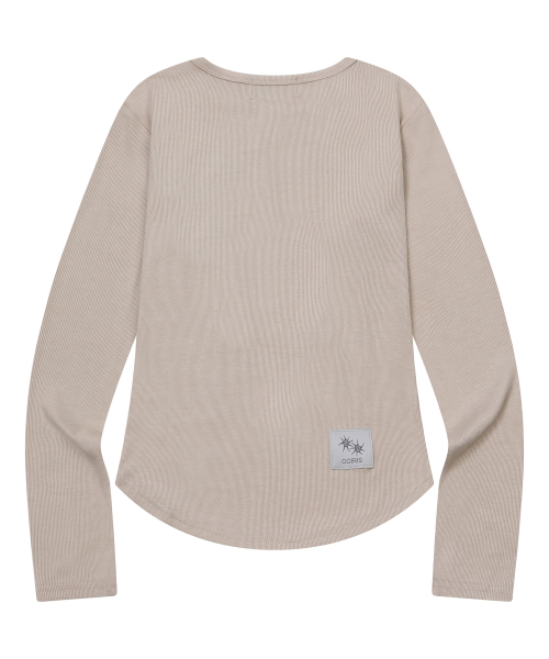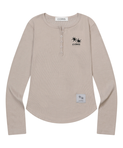 LACE NECK BUTTON LONG SLEEVE OATMEAL