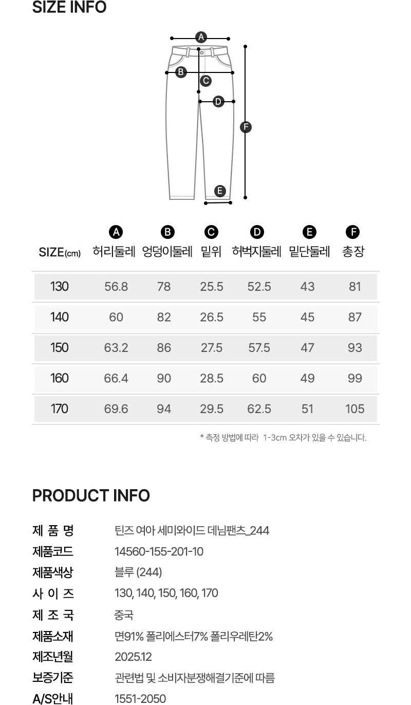 틴즈 여아 세미와이드 데님팬츠_244(14560-155-201-10)