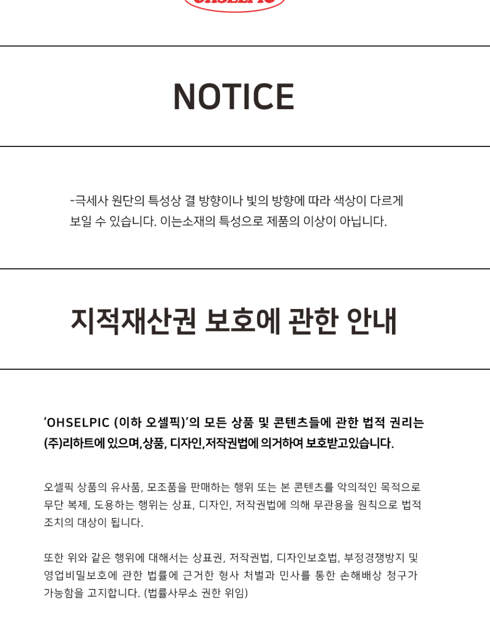 오셀픽(OHSELPIC)은 오늘의 나를 위한 선택에서 출발해 편안함을 바탕으로 일상의 감도를 높이는 홈웨어와 라이프 아이템을 제안하는 브랜드입니다.