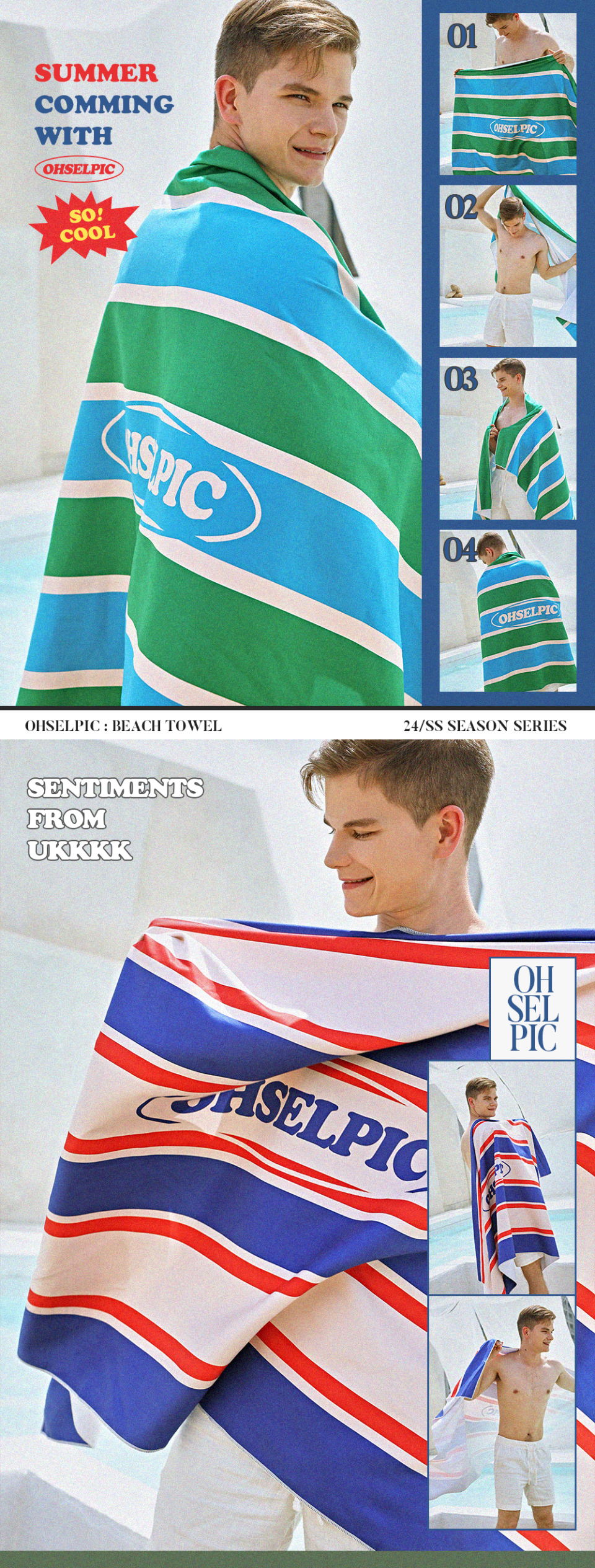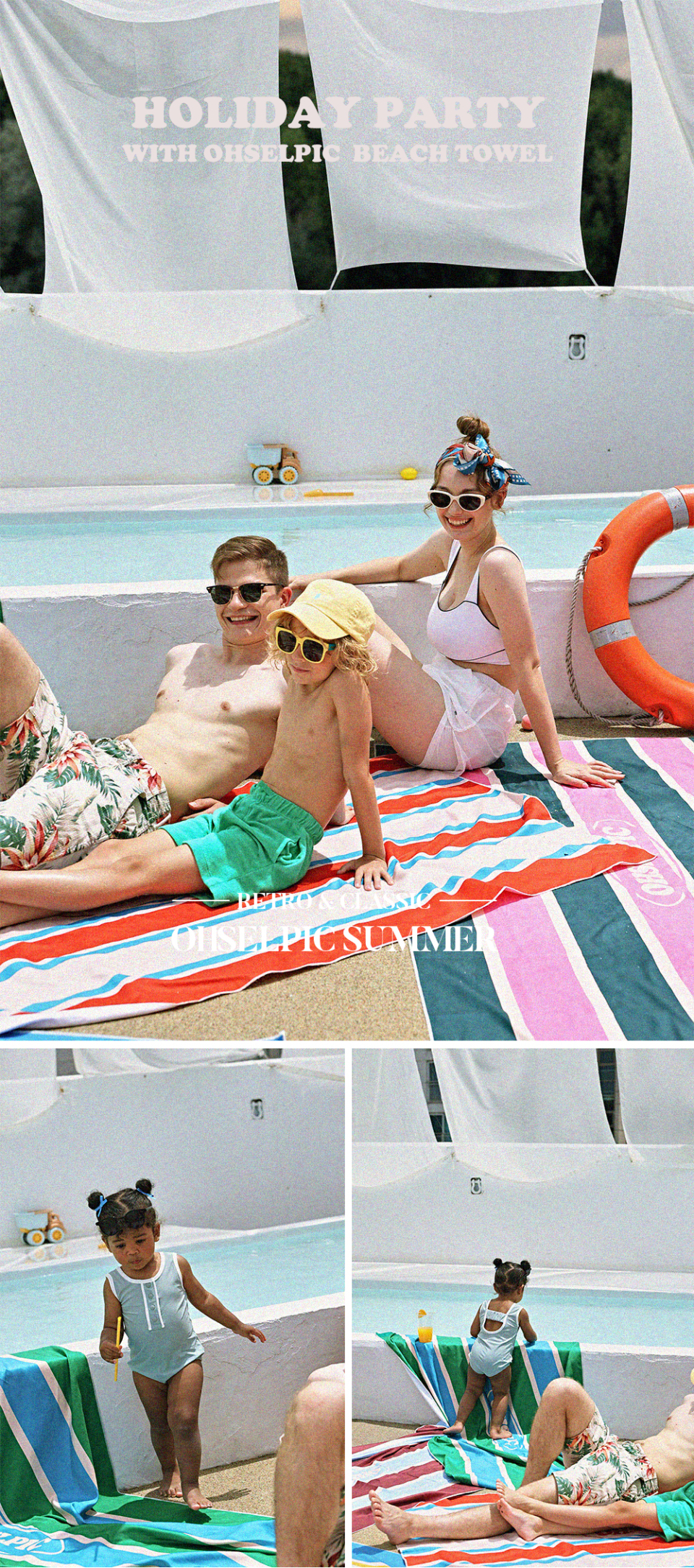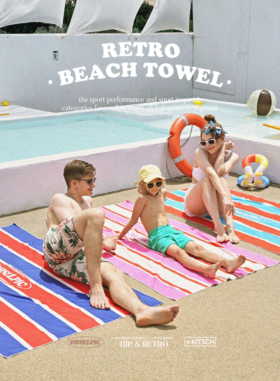레트로 스트라이프 비치타올_미드나잇 네이비