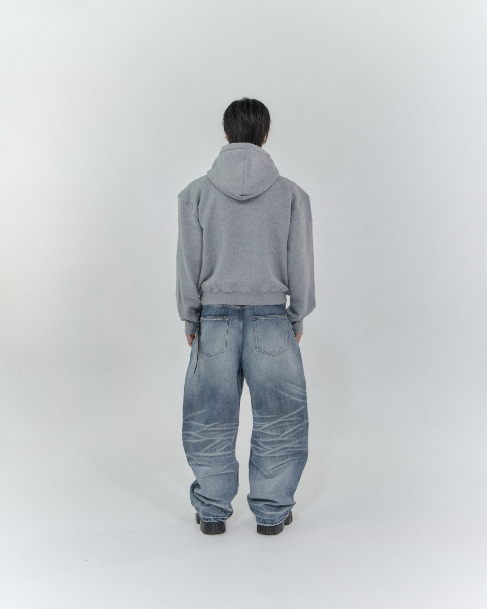 FORCE WASHED HOODIE ZIP-UP CROPFIT BK