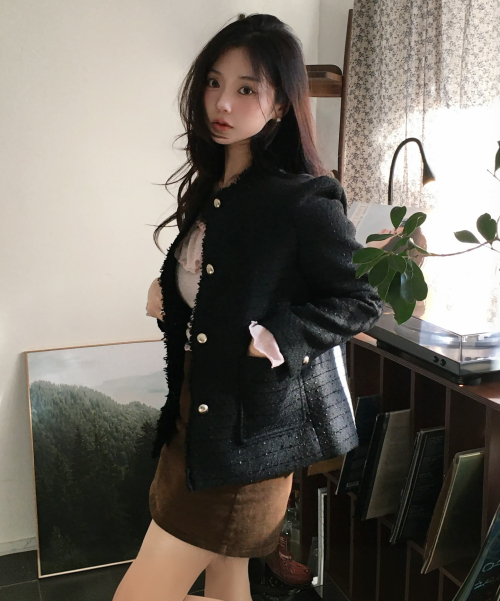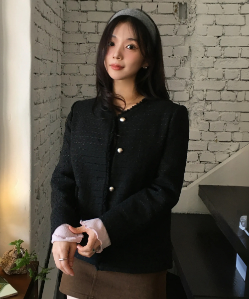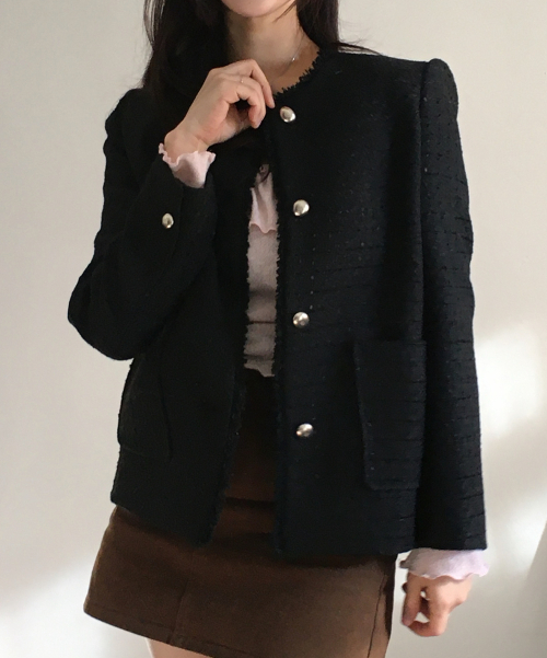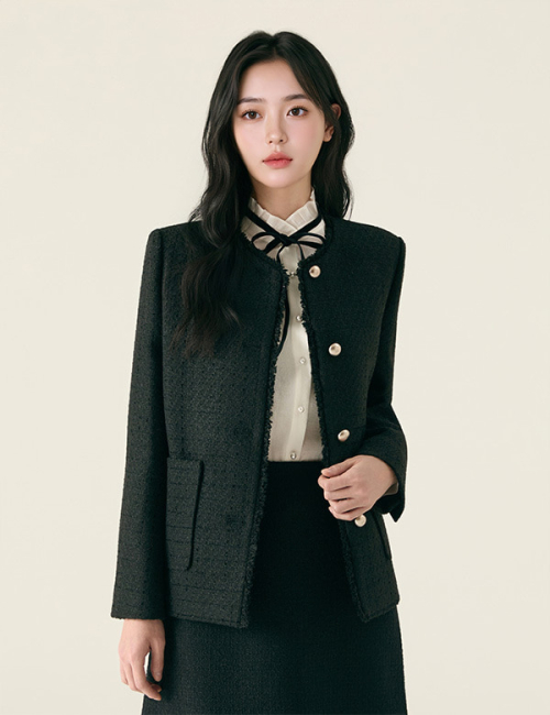 미디 트위드 자켓_RMJKG12S11_BLACK
