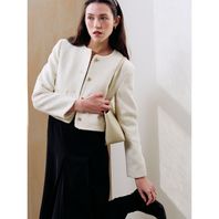 라운드넥 조직감 트위드 숏 자켓 아이보리