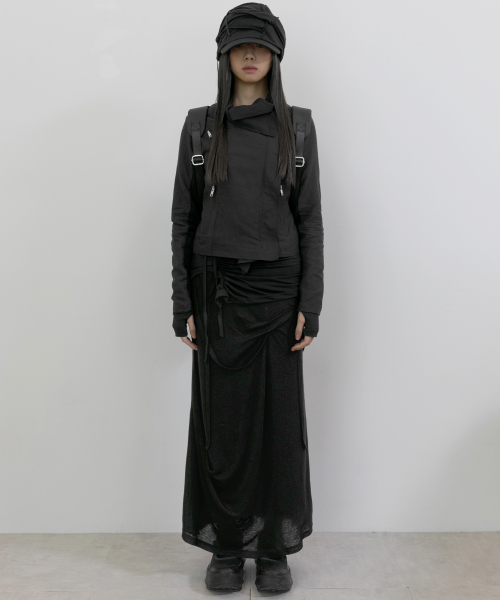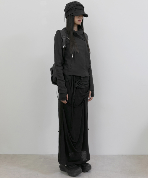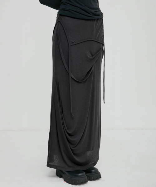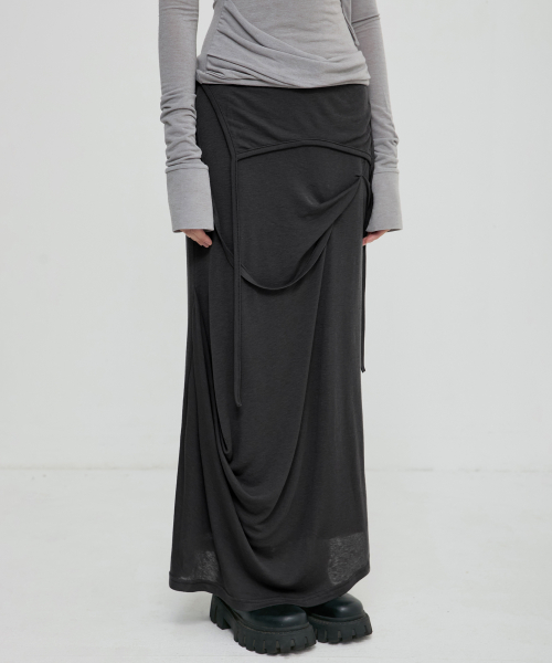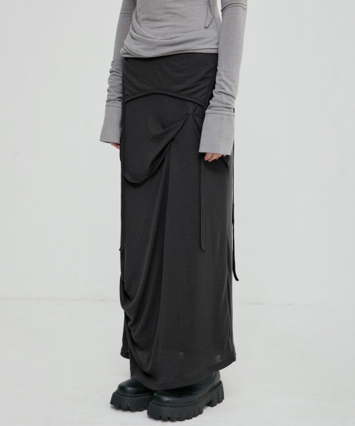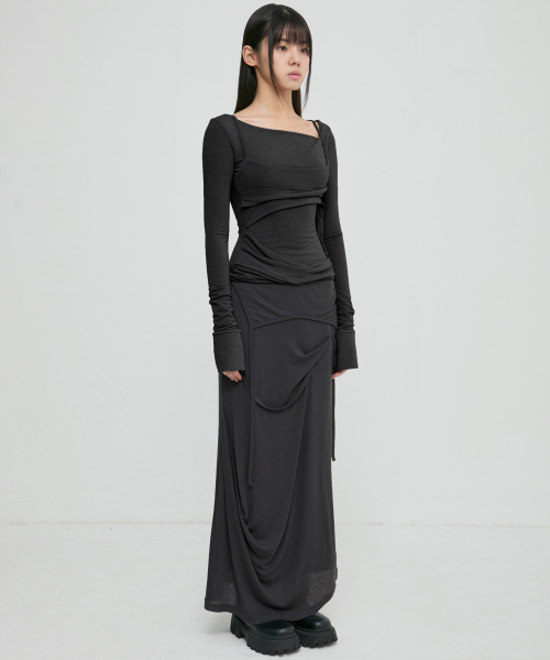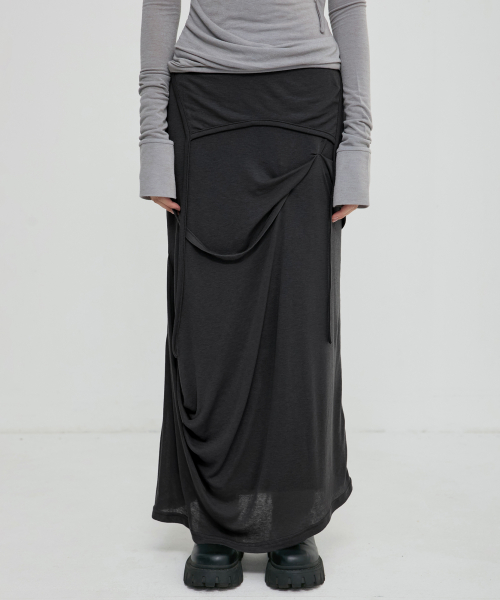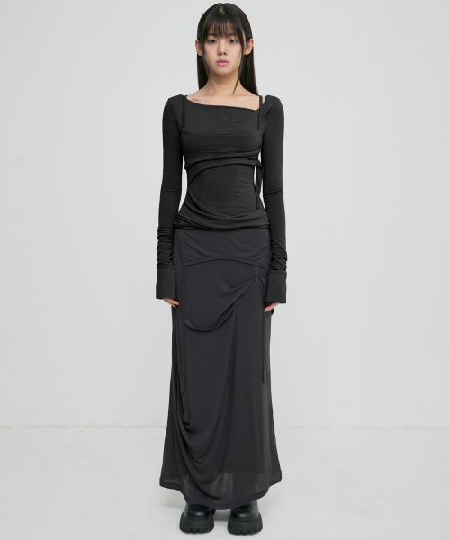 [유인 PICK] Asymmetrical Draped Long Skirt (FL-263_Dark Gray)