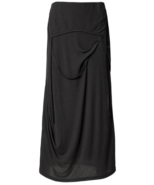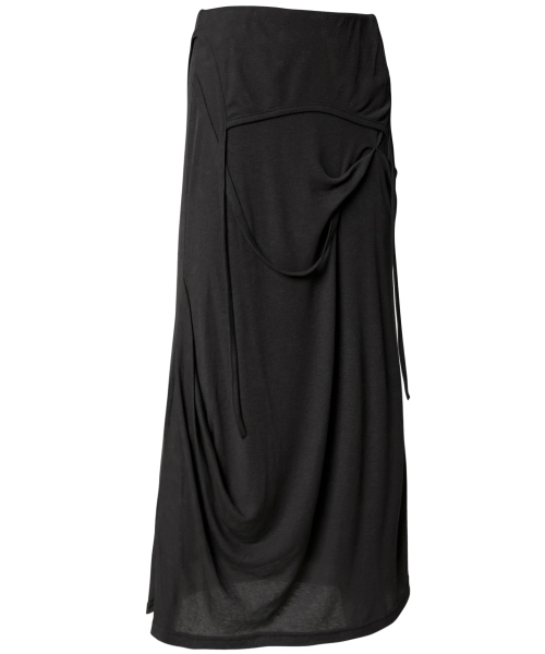 Asymmetrical Draped Long Skirt (FL-263_Black)