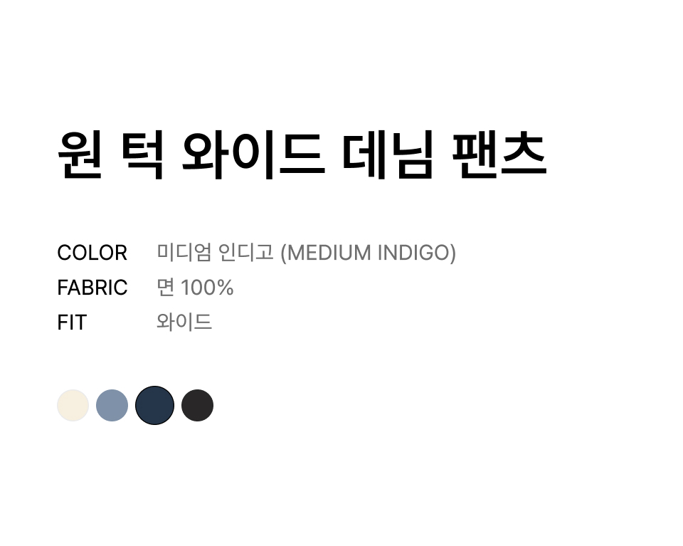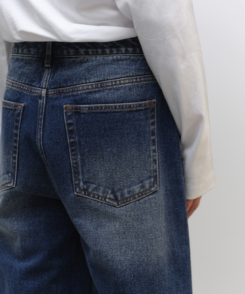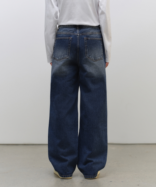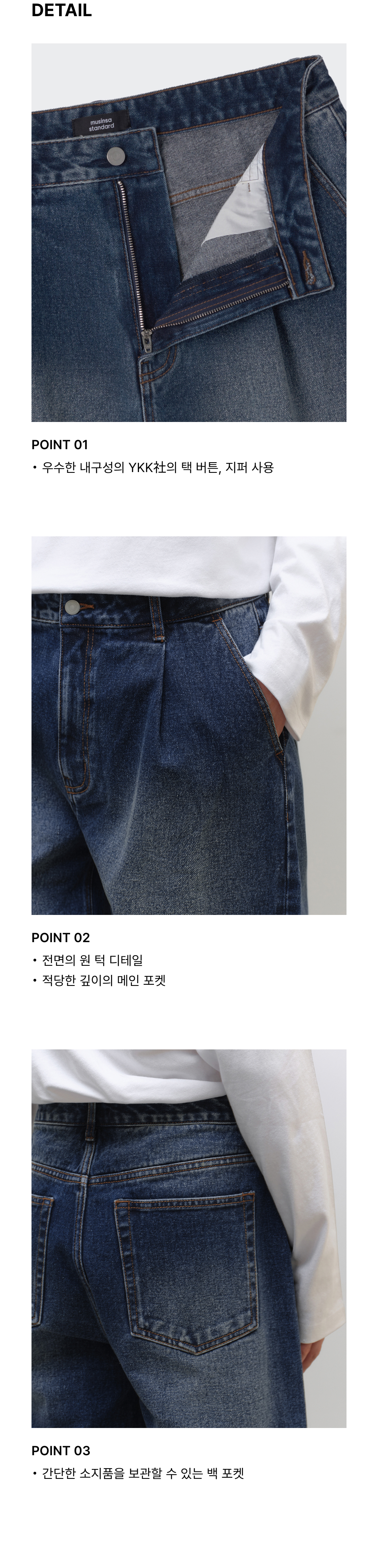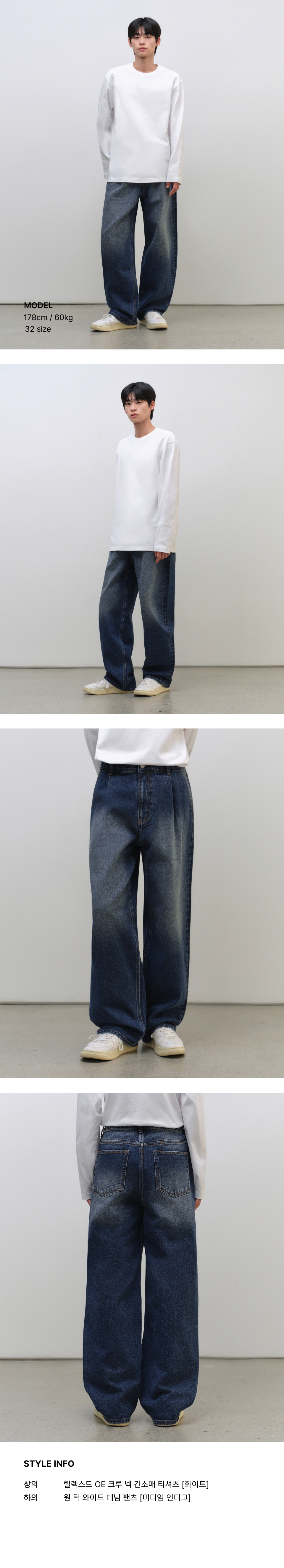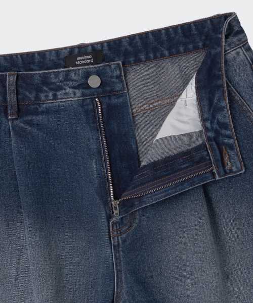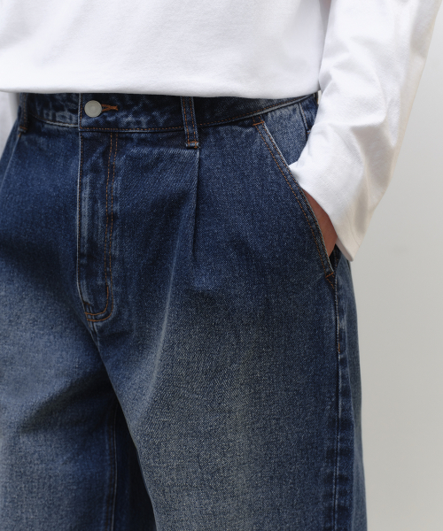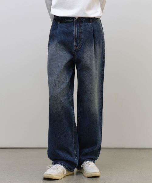 원 턱 와이드 데님 팬츠 [미디엄 인디고]