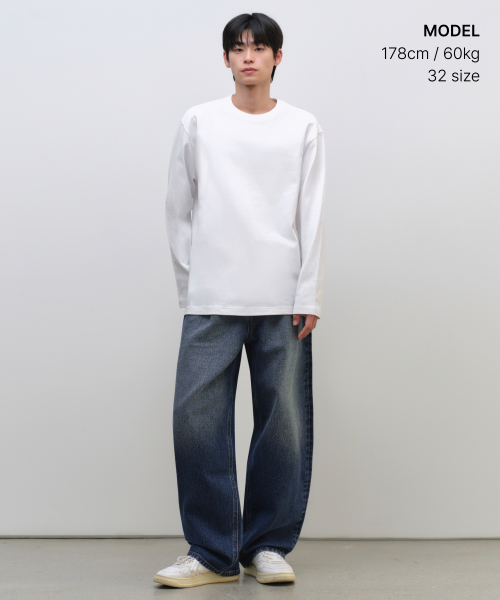 원 턱 와이드 데님 팬츠 [라이트 인디고]