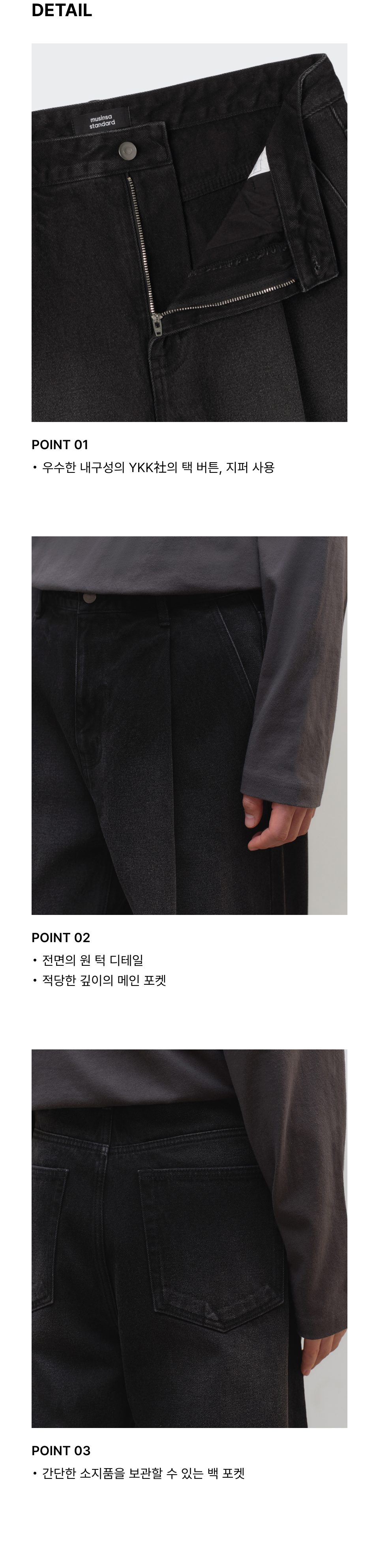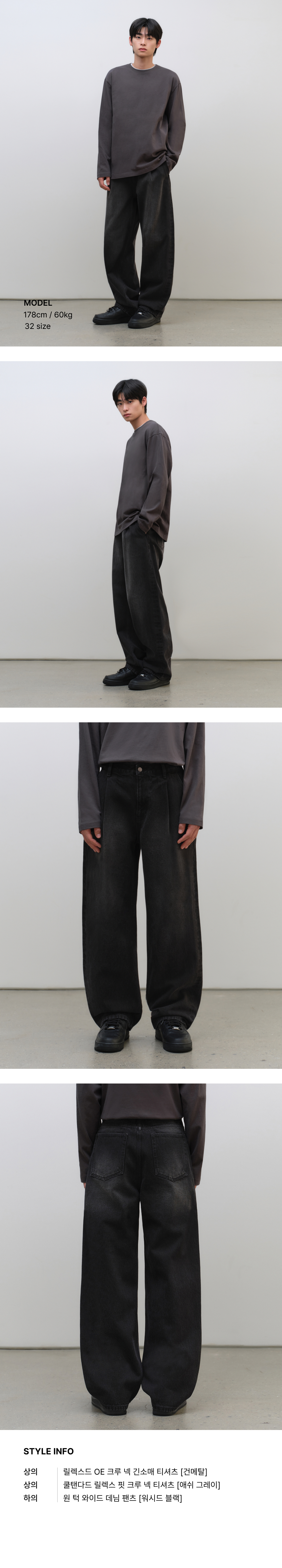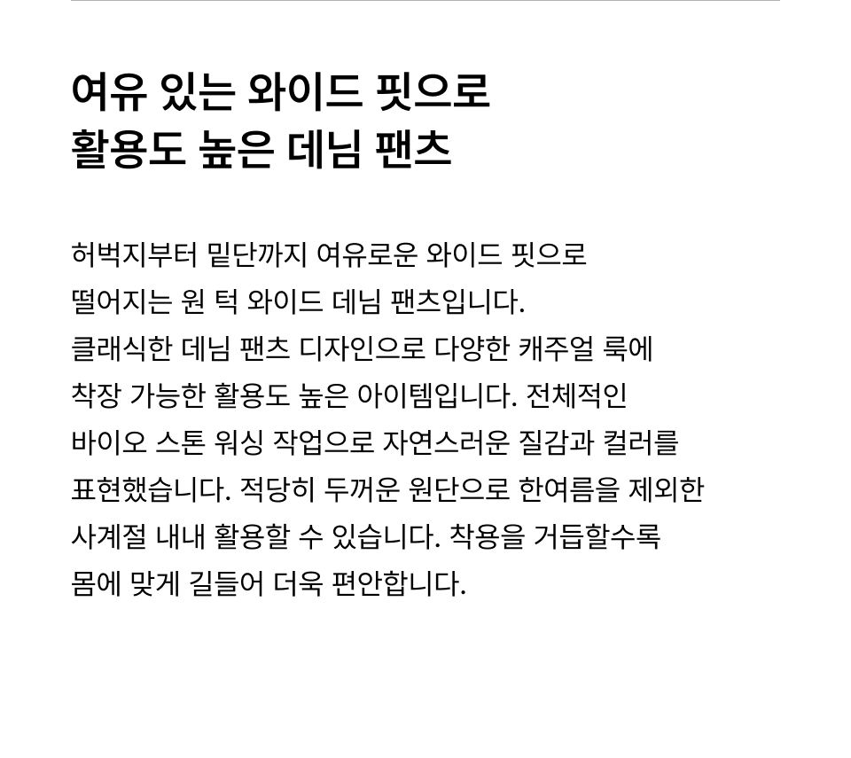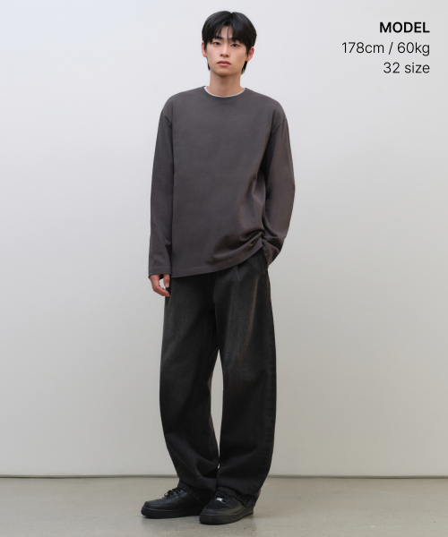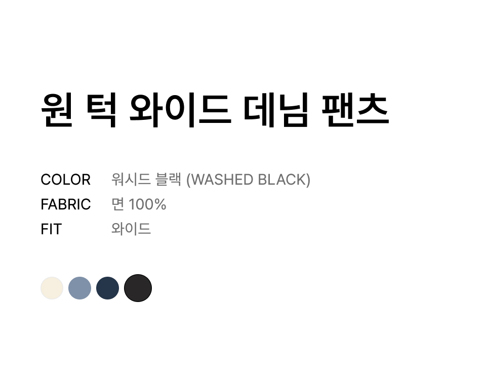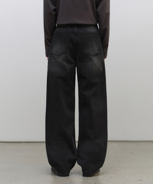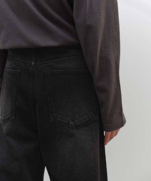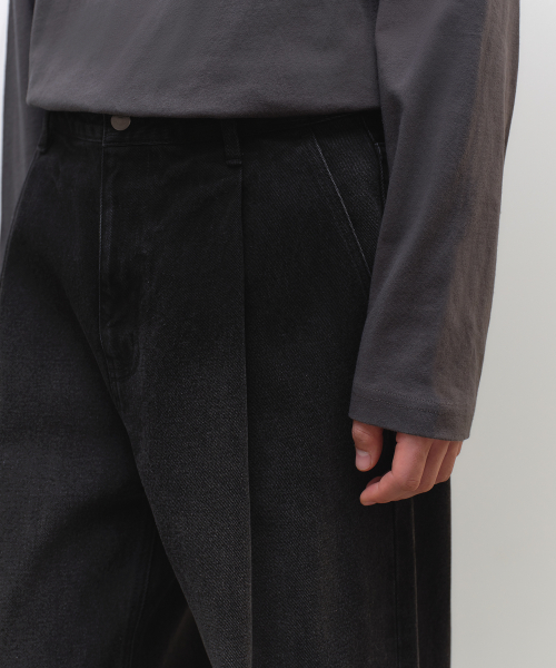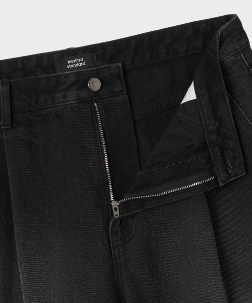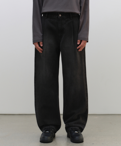 원 턱 와이드 데님 팬츠 [워시드 블랙]
