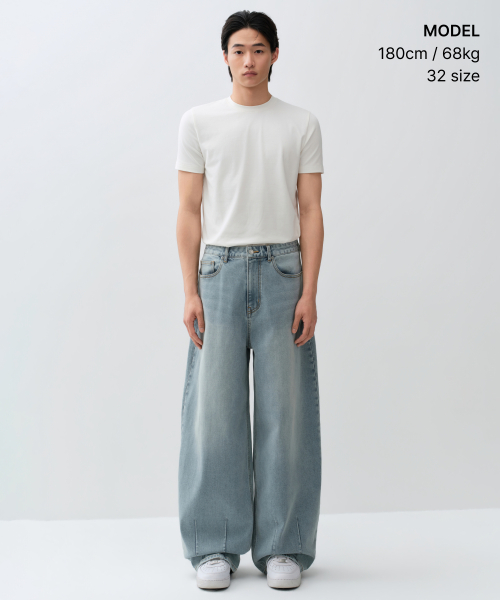 [쿨탠다드] 벌룬 데님 팬츠 [스카이 블루]