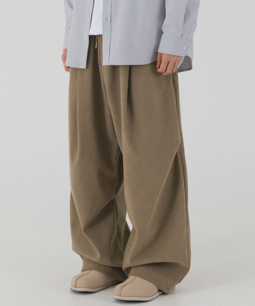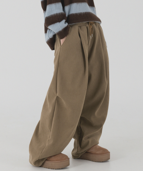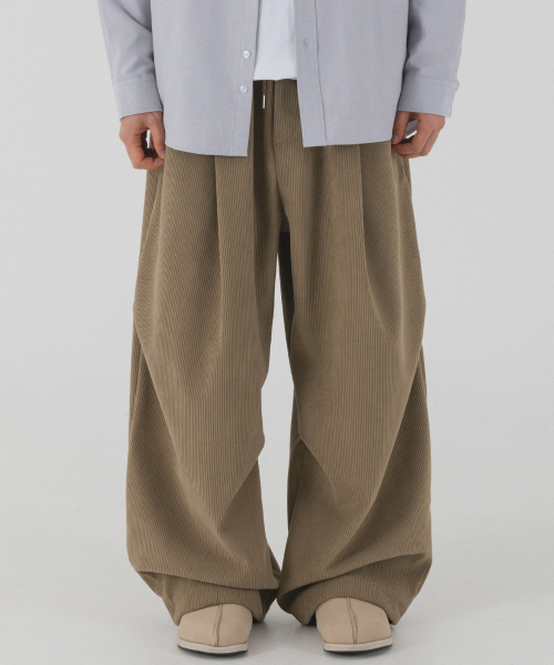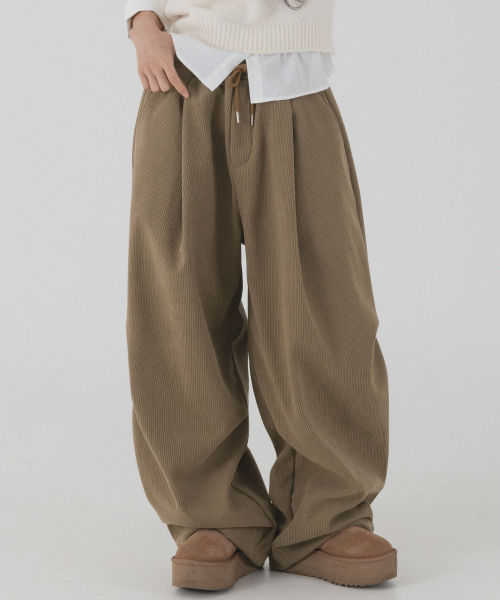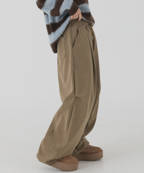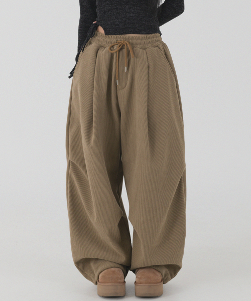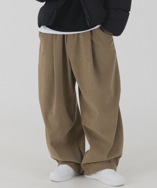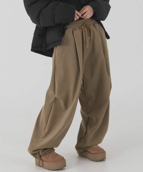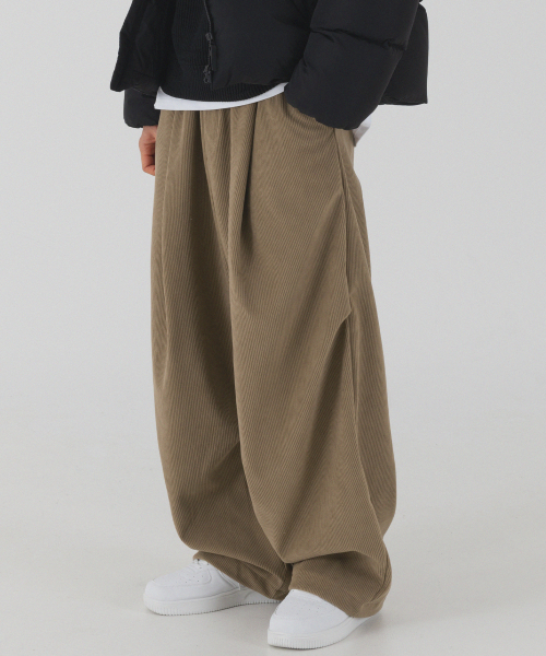 코듀로이 본딩 와이드 파라슈트 팬츠 (브라운)