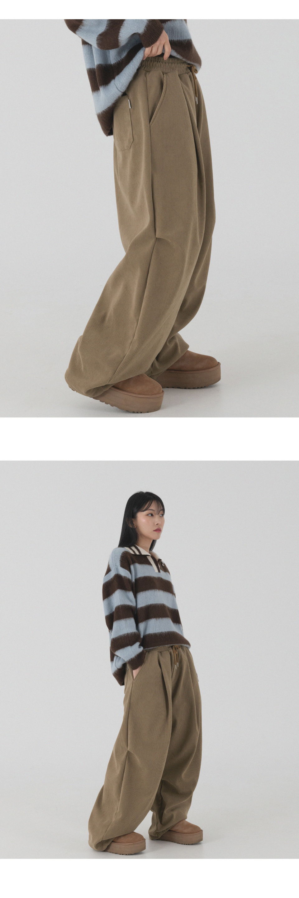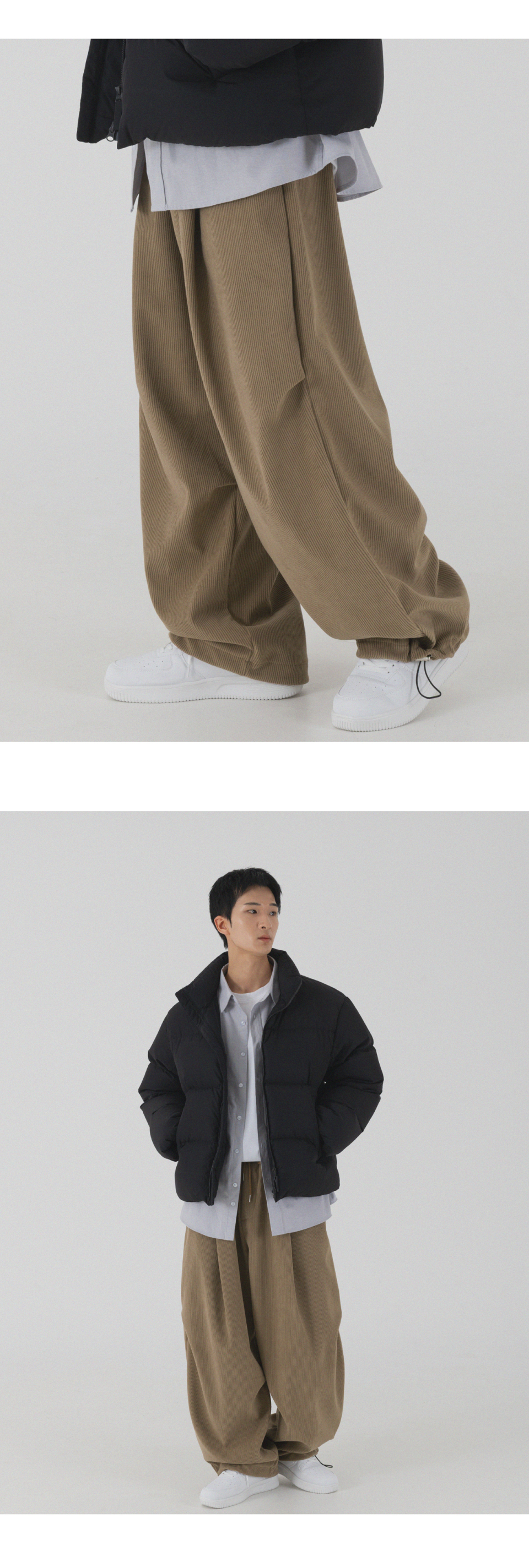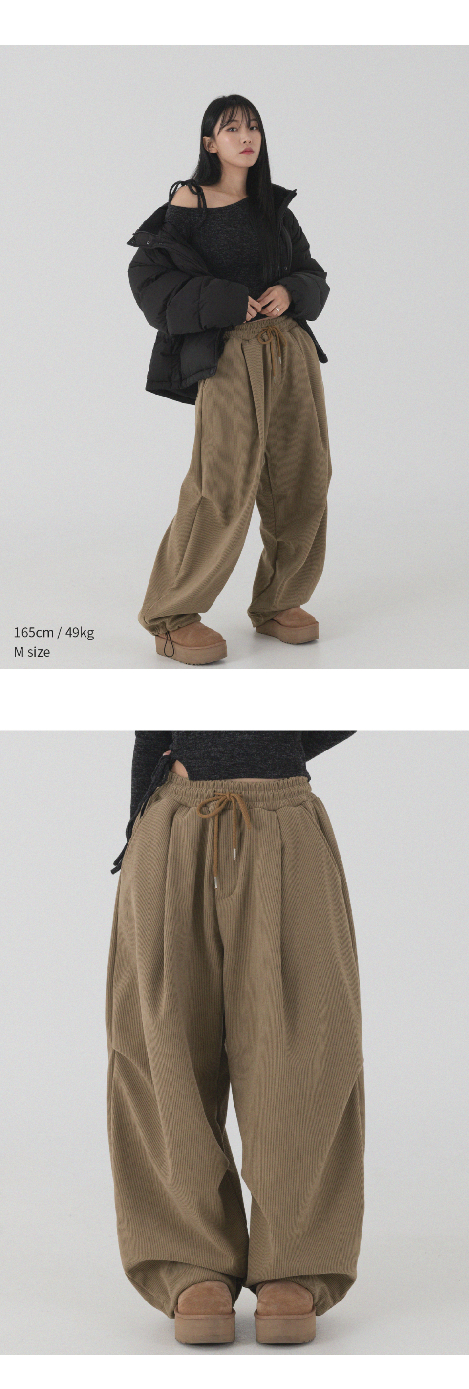 코듀로이 본딩 와이드 파라슈트 팬츠 (브라운)