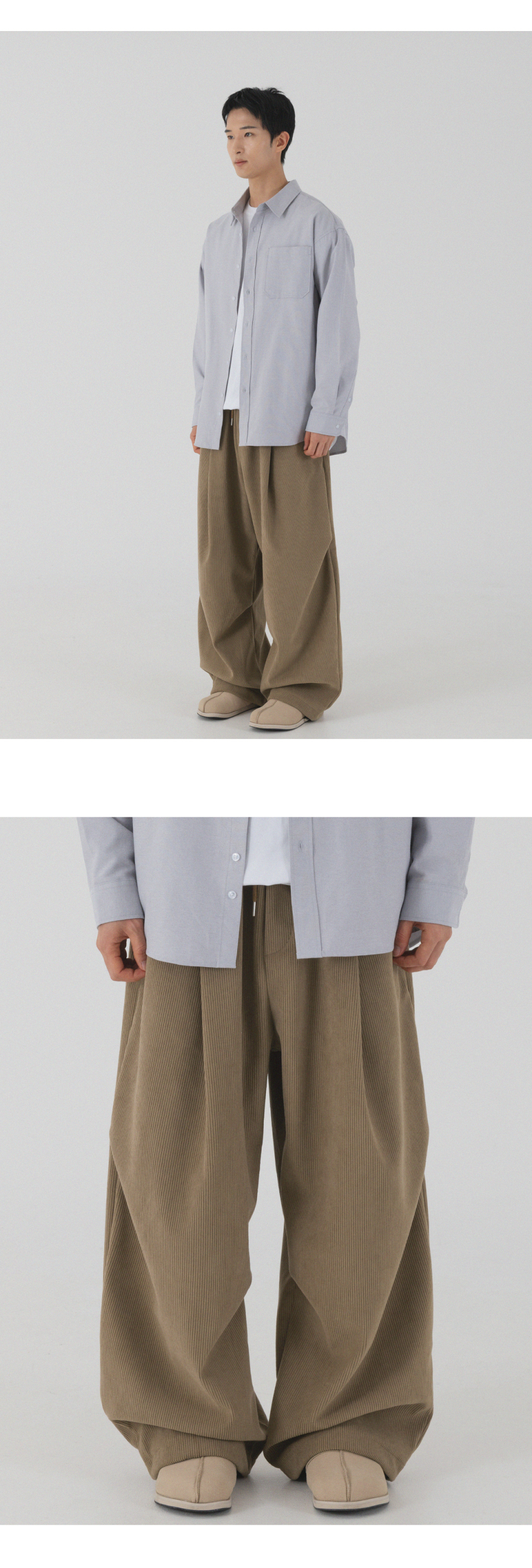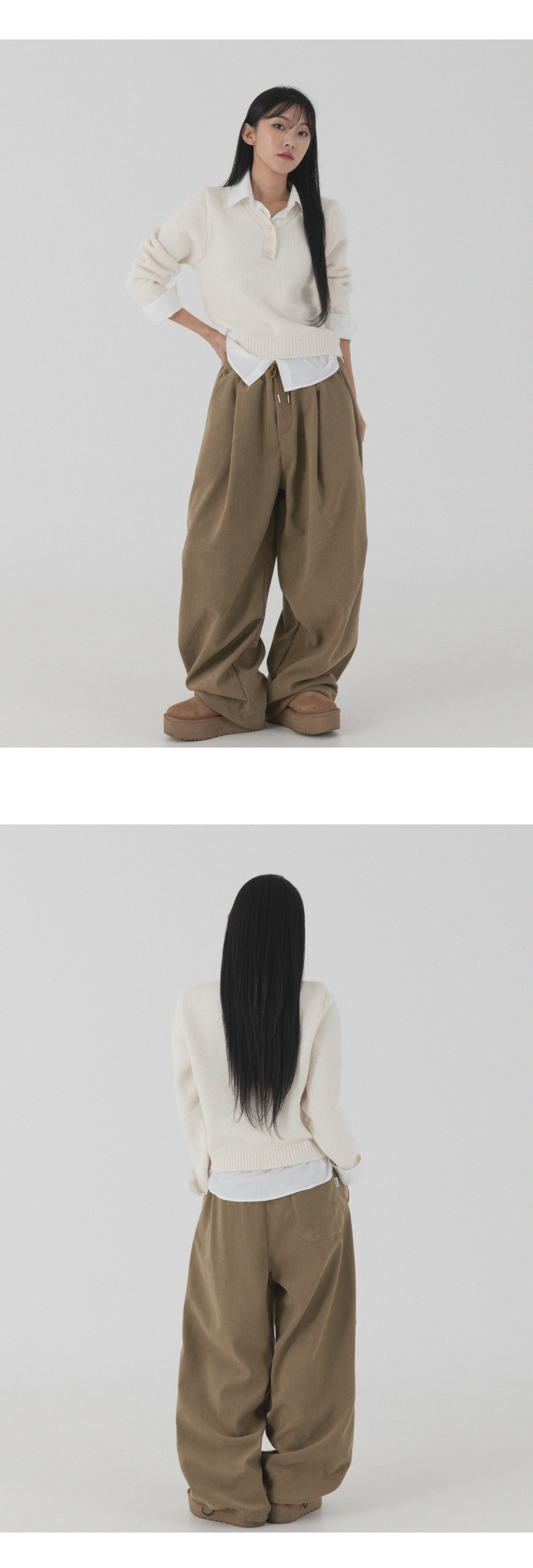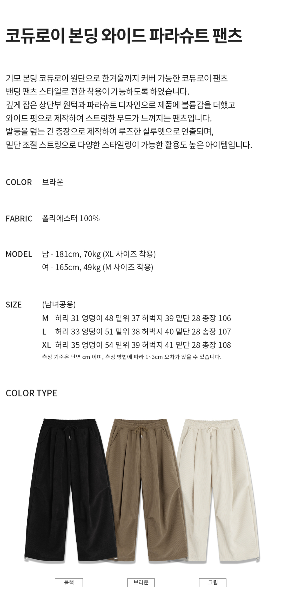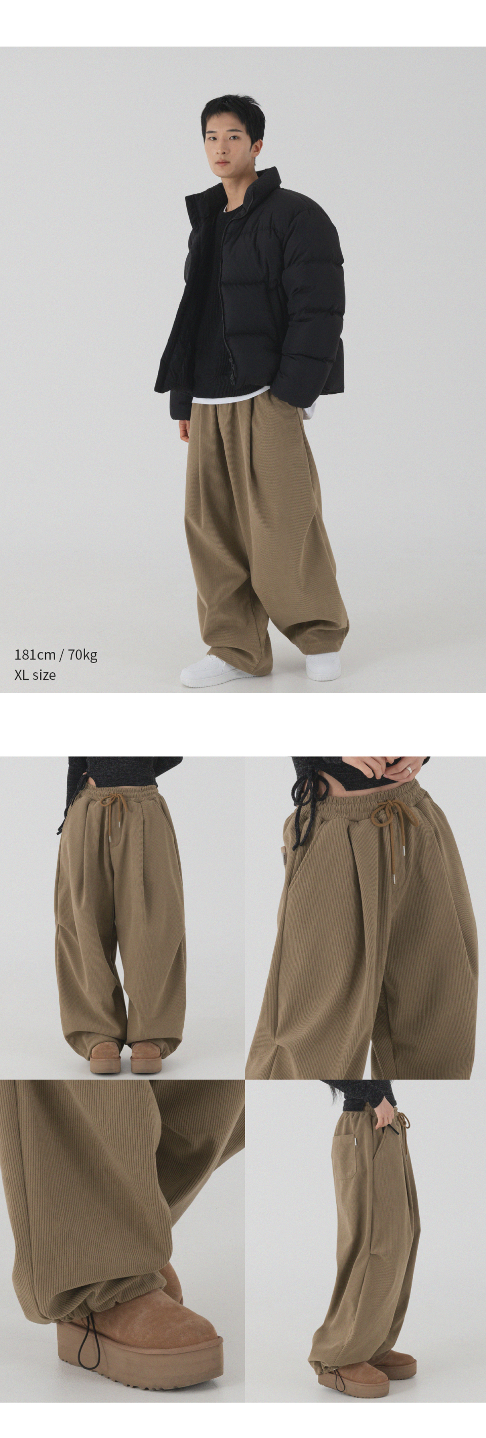 코듀로이 본딩 와이드 파라슈트 팬츠 (크림)