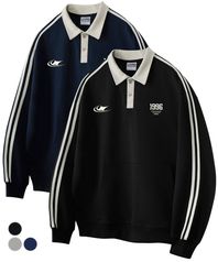 심볼 트랙 럭비카라 오버핏 맨투맨 스웻 티셔츠 3Color