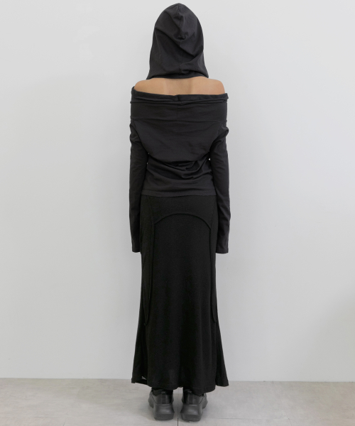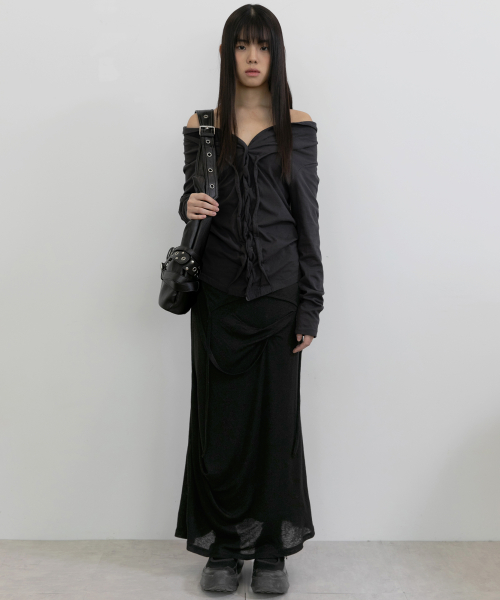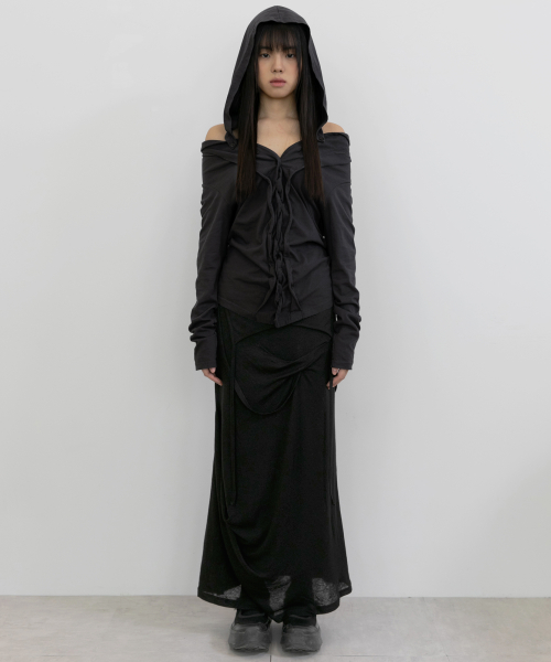 Asymmetrical Draped Long Skirt (FL-263_Black)
