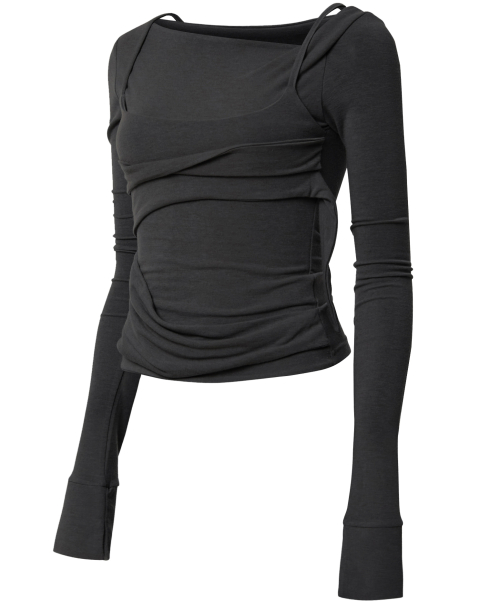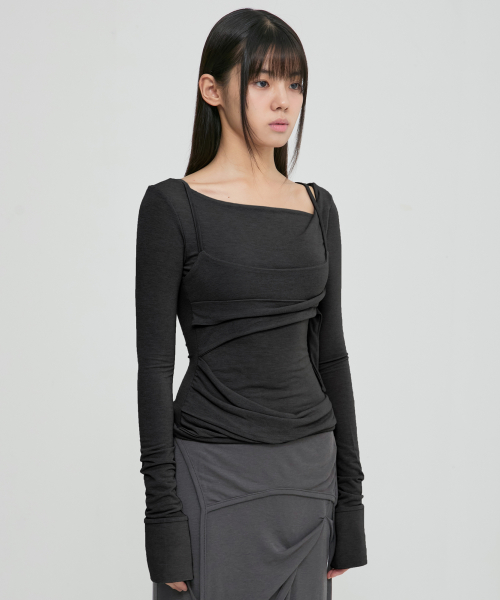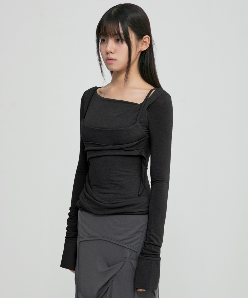 [유인 PICK] Layered Bustier Long Sleeve (FL-105_Charcoal Melange)