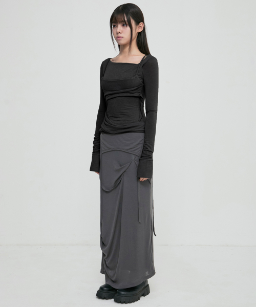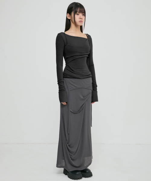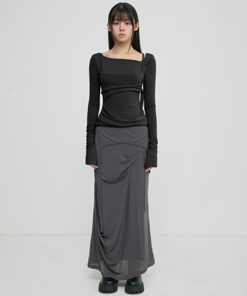 [유인 PICK] Asymmetrical Draped Long Skirt (FL-263_Dark Gray)