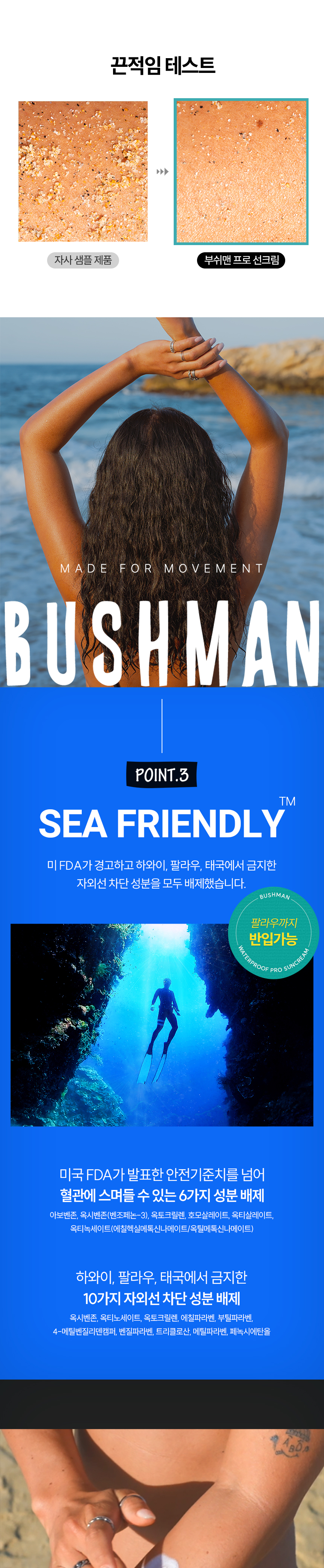 부쉬맨(BUSHMAN)은 태양 아래 모든 활동에서 피부와 자연을 지키고 도전을 응원하는 서머뷰티 브랜드입니다.