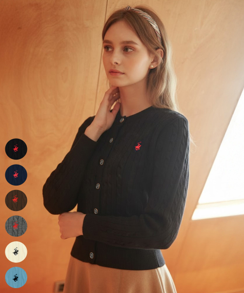 여성 로고버튼 케이블 니트 가디건 6Color TK030