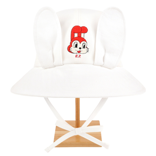 베베드피노 메르시 버니 버킷햇입니다. 깔끔한 IVORY컬러의 조직감있는 Cotton원단으로 제작했습니다. 모자 앞쪽 패널에는 토끼가 연상되는 귀를 입체적으로 장식하여 귀여움을 더해주었습니다. 정면 패널 중심에는 이번시즌 베베드피노 만의 오브제인 Merci bunny 자수로 깜찍한 포인트를 주었습니다. 챙의 앞,뒤 폭을 다르게 디자인하였고, 모자가 쉽게 벗겨지지 않도록 끈을 달아주어 리본으로 묶을 수 있습니다.