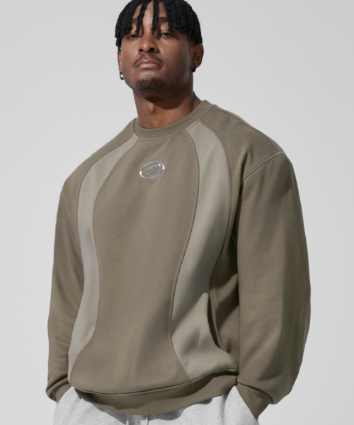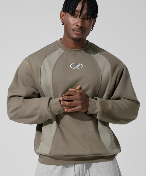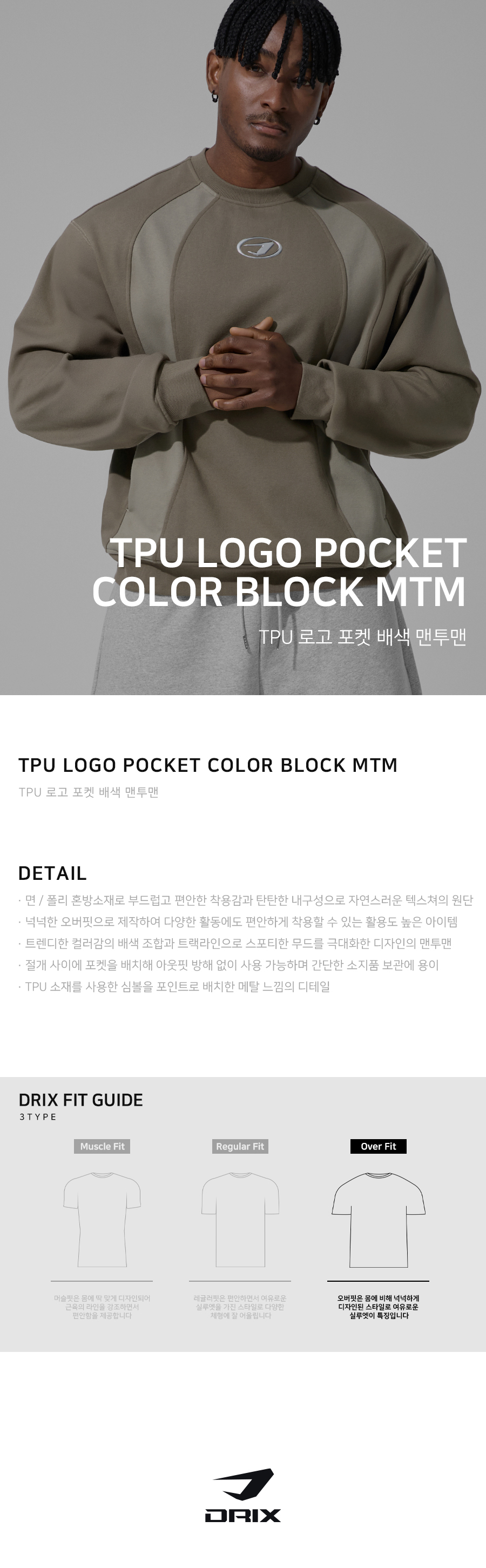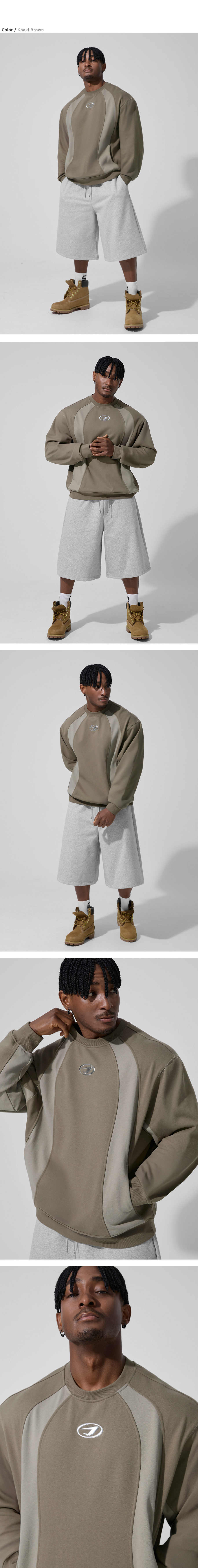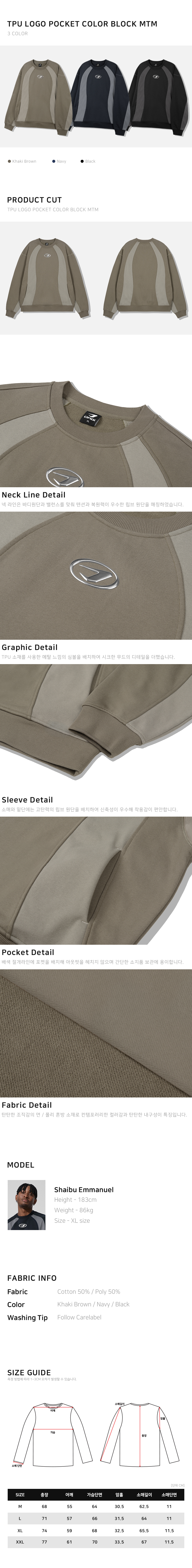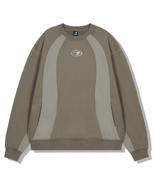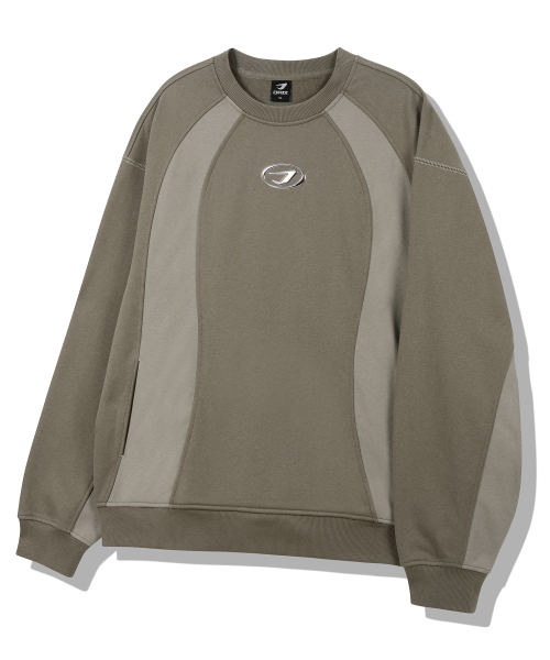 메탈 심볼 포켓 배색 맨투맨_카키 브라운