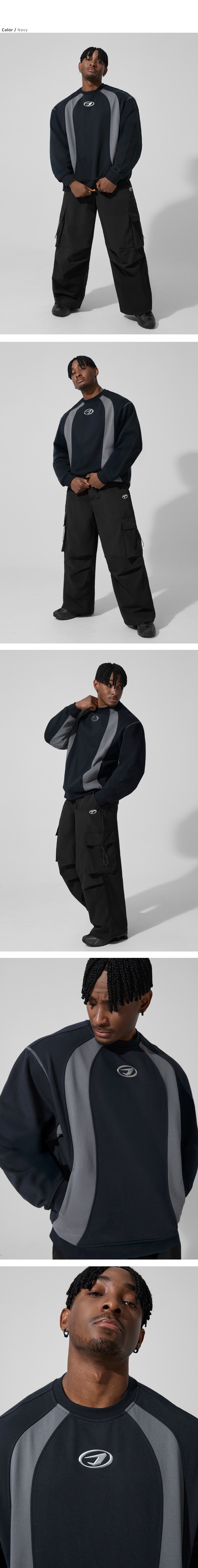 메탈 심볼 포켓 배색 맨투맨_블랙