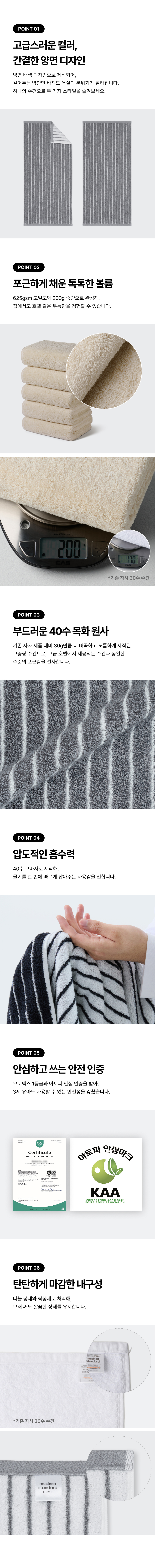 40수 200g 호텔 수건 10팩 [그레이 스트라이프]