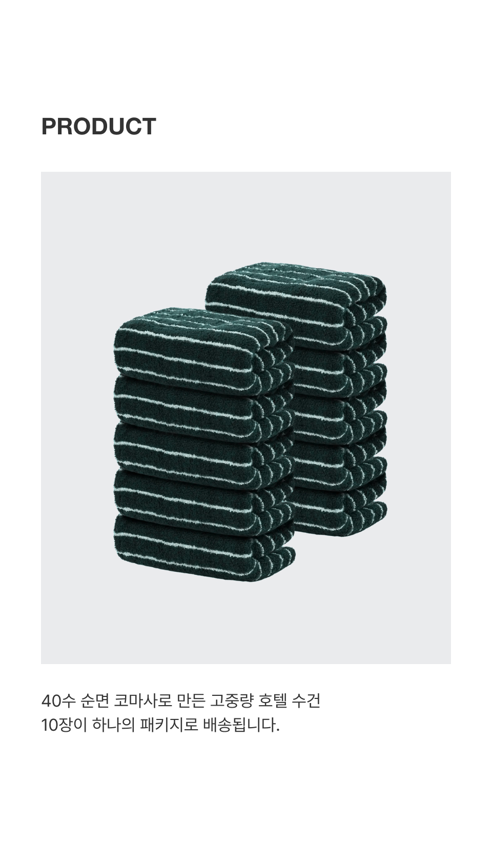 40수 200g 호텔 수건 10팩 [딥그린 스트라이프]