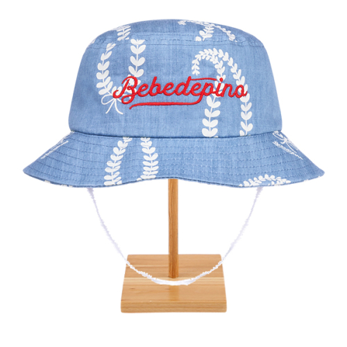 베베드피노 올 오버 페이즐리 데님 버킷 햇입니다. 가벼운 청 컬러의 데님 원단에 베베드피노 23SS 오브제인 Paisley 그래픽을 롤 프린팅하여 제작했습니다. 정면 패널 중심에는 이번 시즌 오브제인 Bebedepino 레터링 자수를 넣어 장식하였습니다. 모자가 쉽게 벗겨지지 않도록 모자 고정 끈이 달려있습니다.