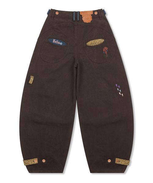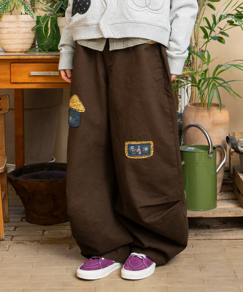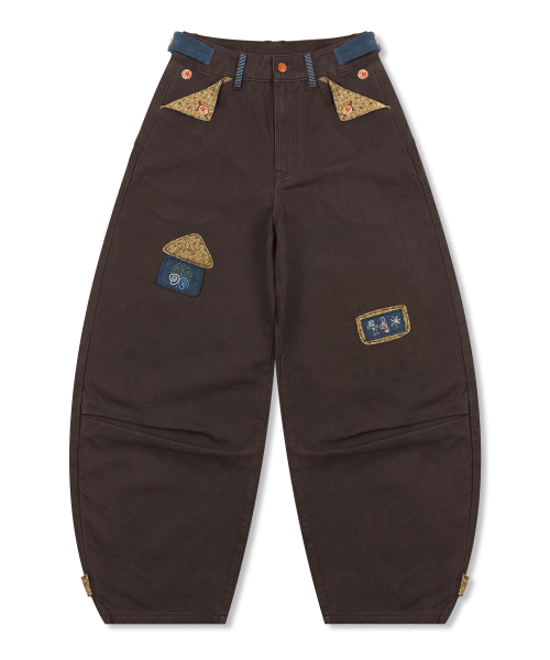 WXP083 오마메 꽃무늬 배색 팬츠 (BROWN)