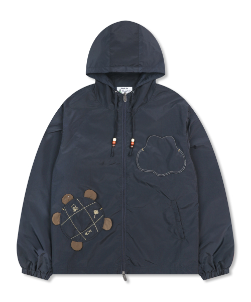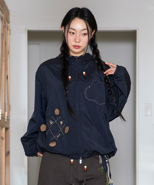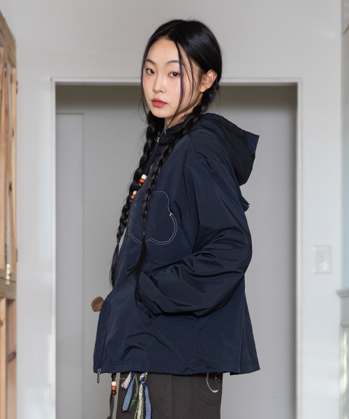 WXJ047 하루아토 아플리케 스트라이프 후드 집업 (NAVY)