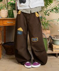 WXP083 오마메 꽃무늬 배색 팬츠 (BROWN)