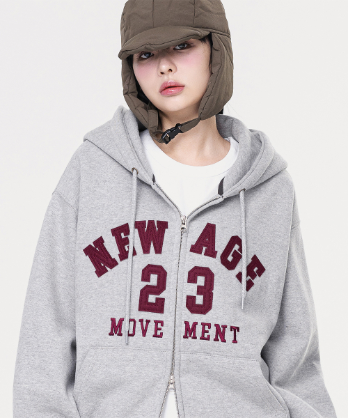 52 APPLIQUE HOODIE ZIP UP LIGHT GREY