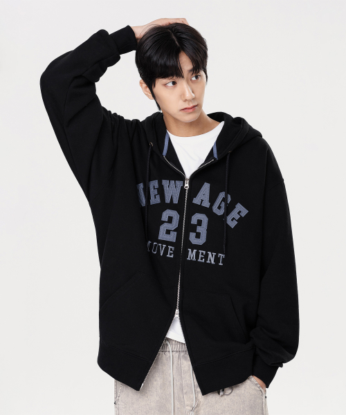 [기모]NEW AGE 패치 투웨이 오버핏 후드집업 AZH682 (2 COLOR)