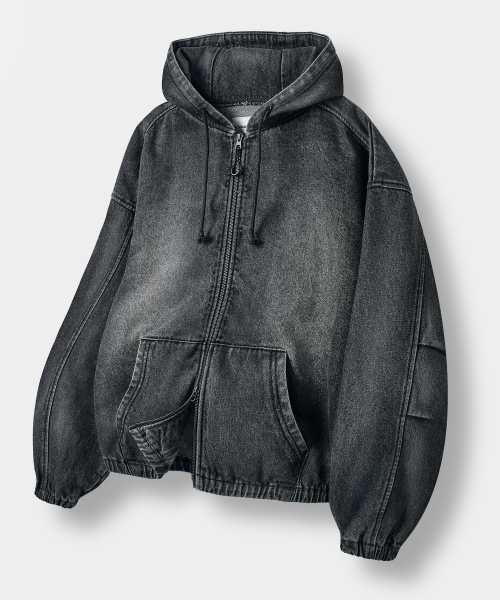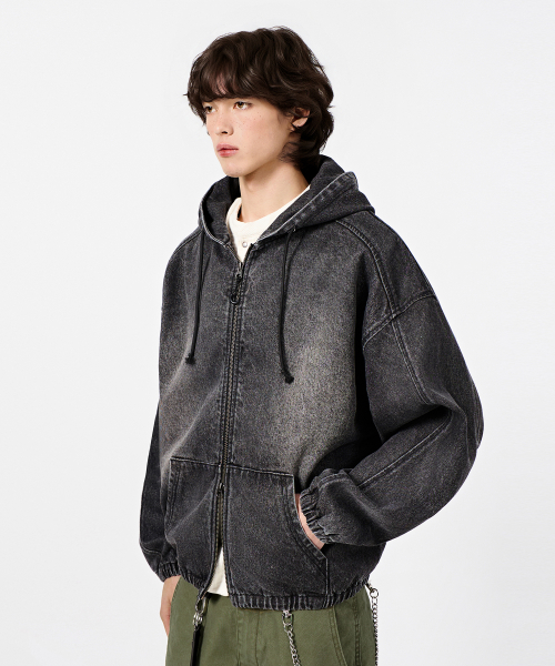 ASI 포시즌 에센셜 후드 집업_데님 빈티지 블랙