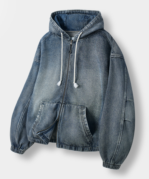ASI 포시즌 에센셜 후드 집업_데님 더스트 인디고